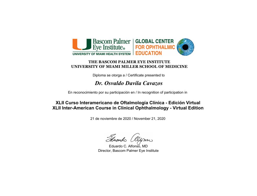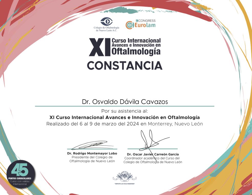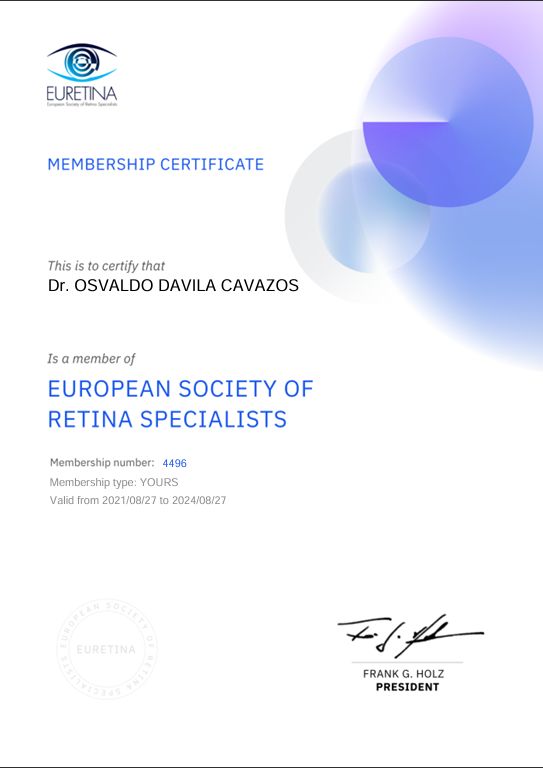 Cuento con formación especializada y experiencia continua en procedimientos avanzados de retina médica y quirúrgica, garantizando diagnósticos precisos y tratamientos eficaces.