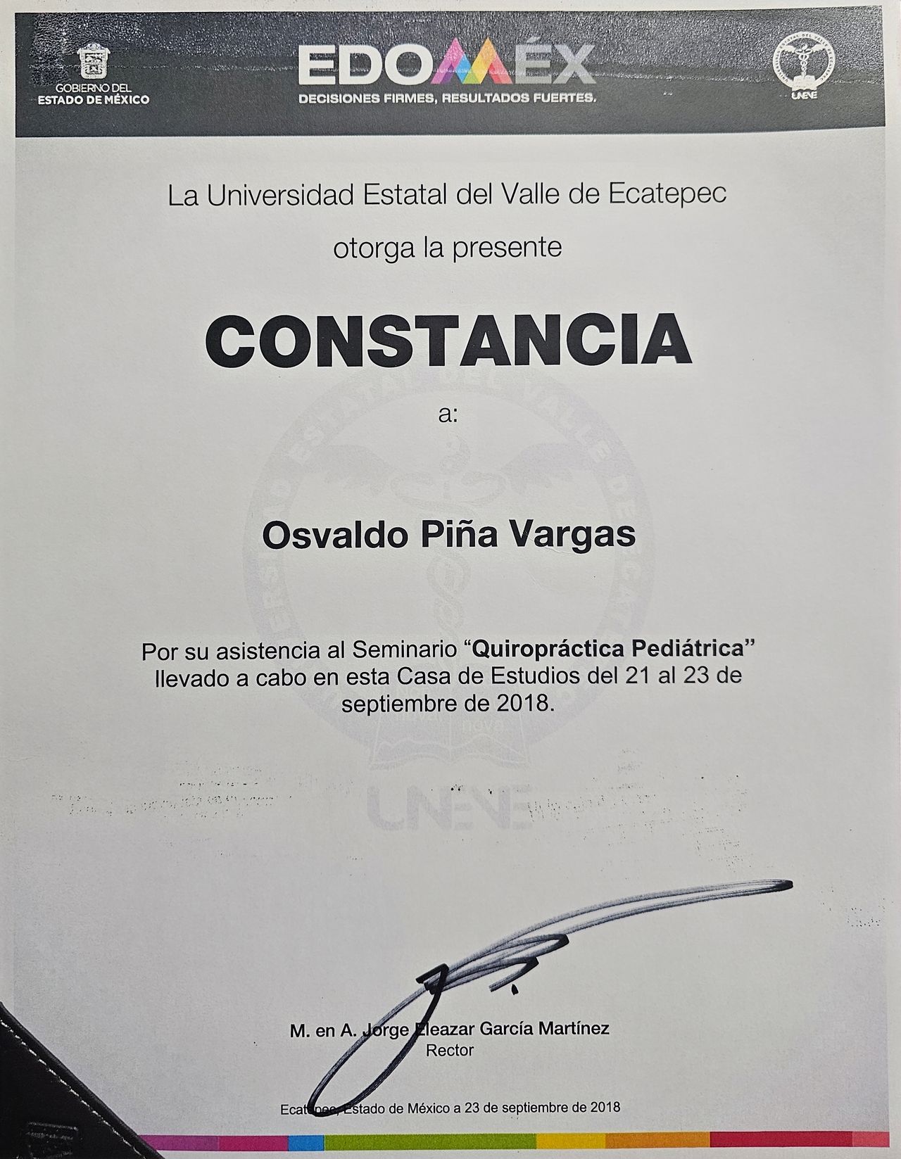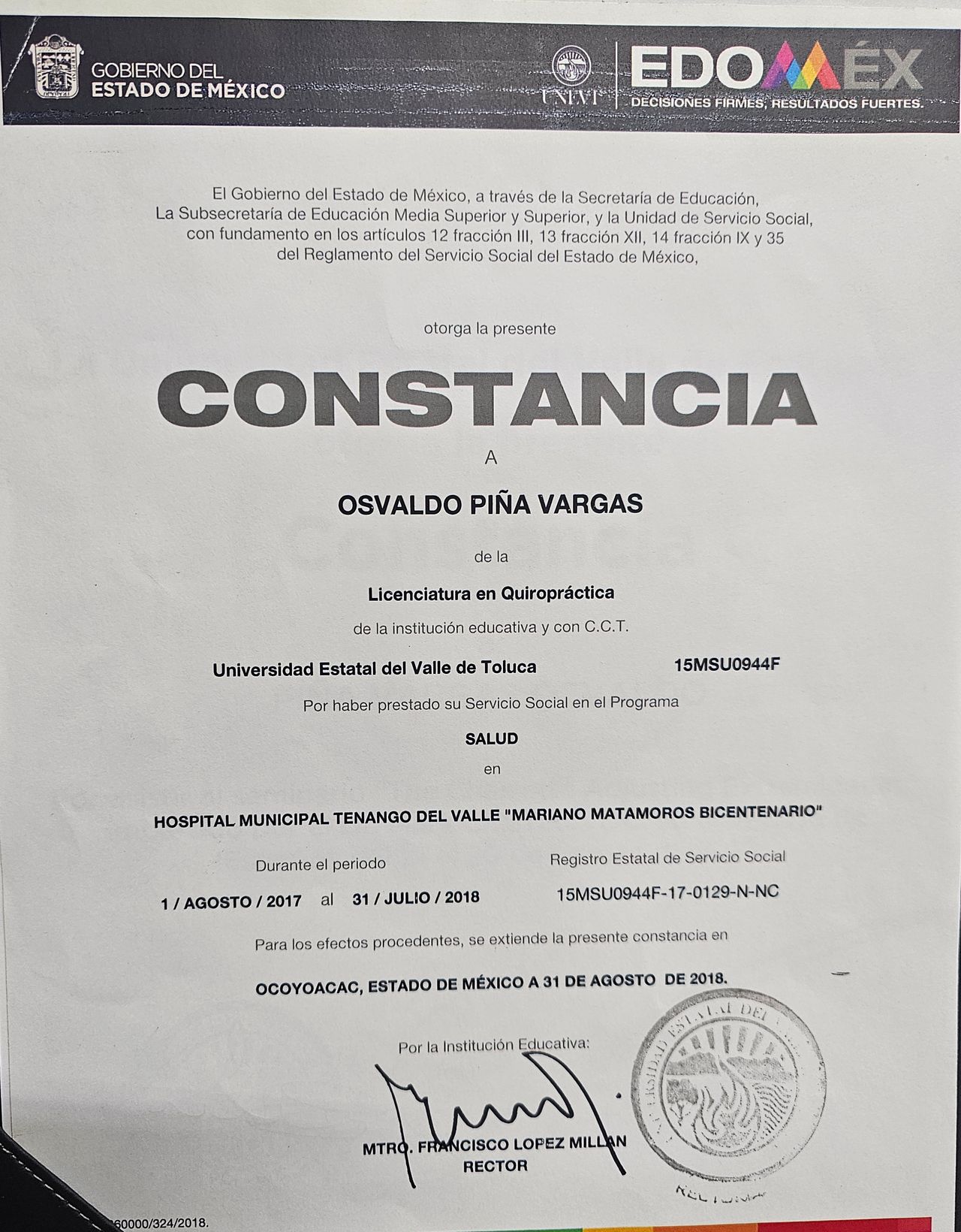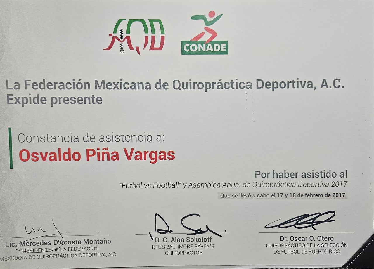 Soy Osvaldo Piña, Licenciado en Quiropráctica por la Universidad Estatal del Valle de Toluca (UNEVT), egresado en el año 2018.