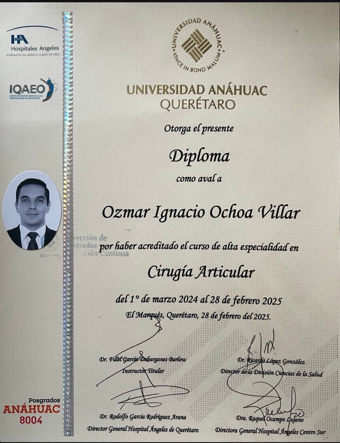 Cirugía Articular avalado por la Universidad Anáhuac Querétaro.