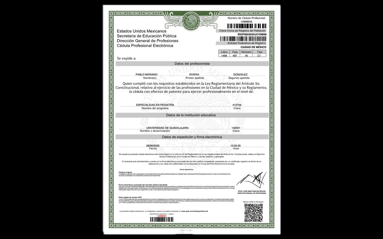 Mi compromiso es acompañar a madres y padres en cada etapa del crecimiento de sus hijos, resolviendo dudas y ofreciendo orientación médica basada en evidencia para garantizar un desarrollo saludable.
