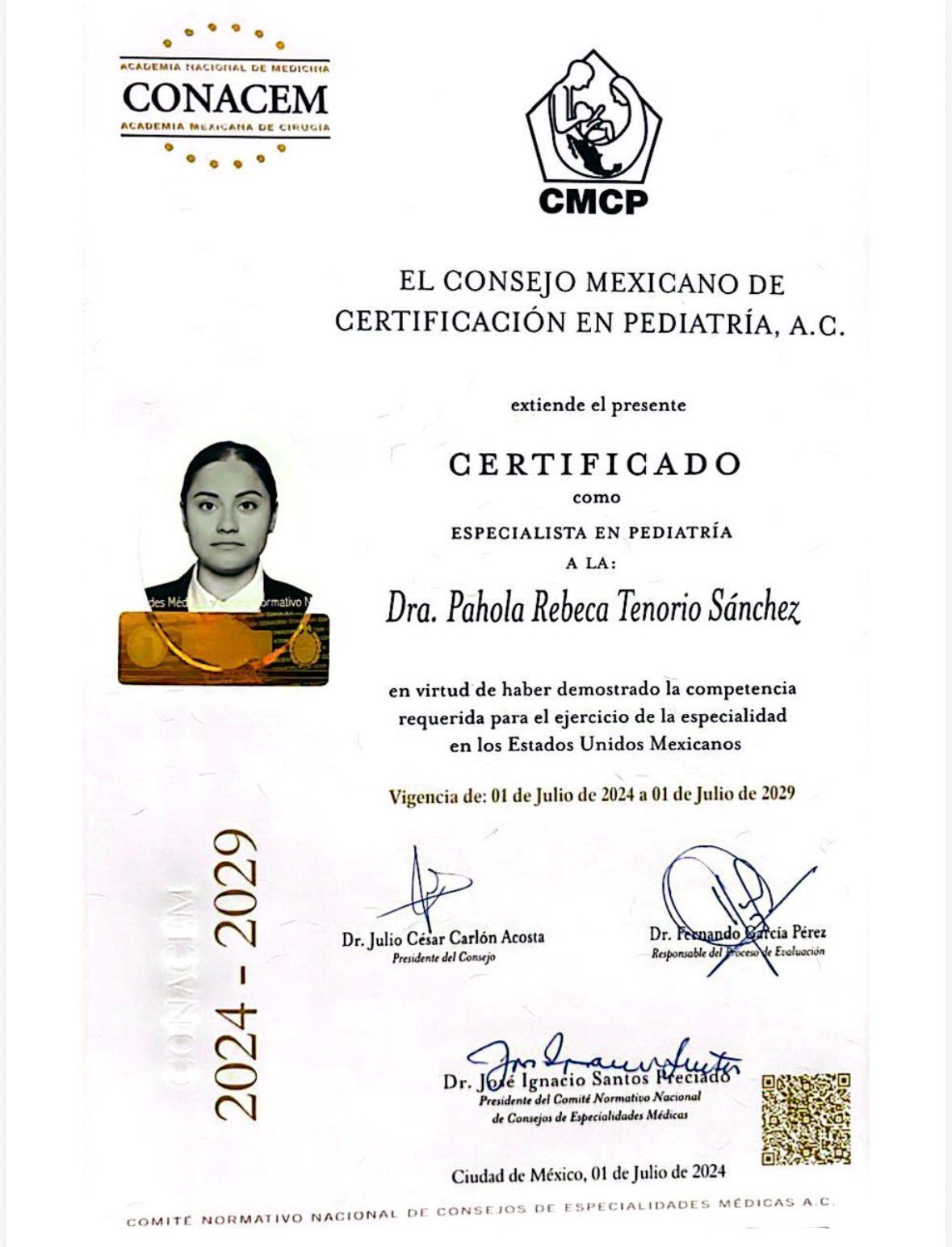 Pediatra Certificada por el Consejo Mexicano de Pediatría A.C. No. 27114