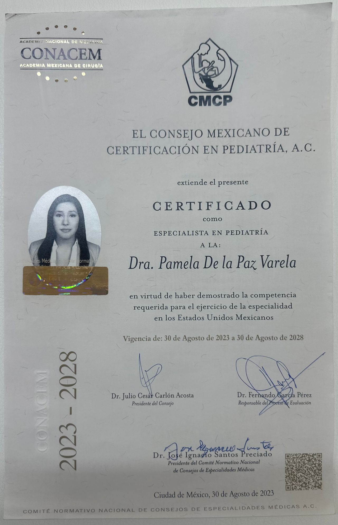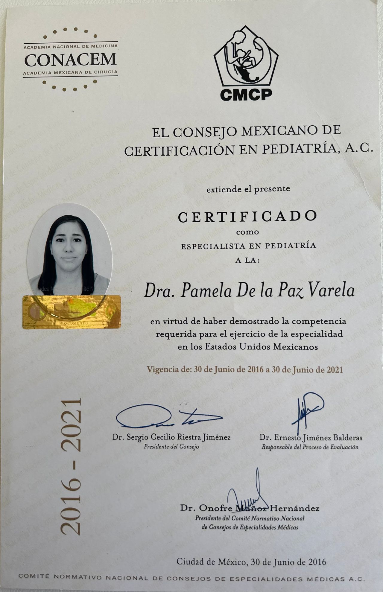 Certificada por el Consejo Mexicano de certificación en Pediatría A.C.