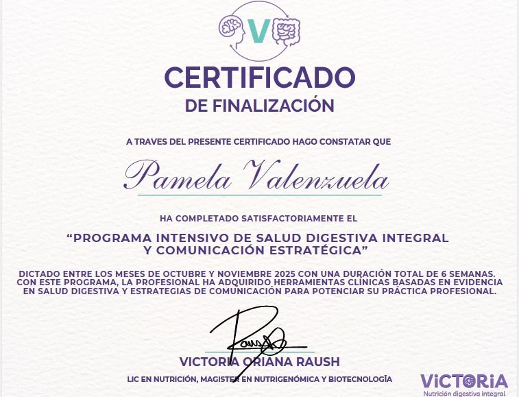 ¡Hola! Soy Pamela Valenzuela, nutricionista, y me especializo en ayudarte a mejorar tu salud, tu digestión y tu relación con la comida a través de un enfoque integral, realista y personalizado.