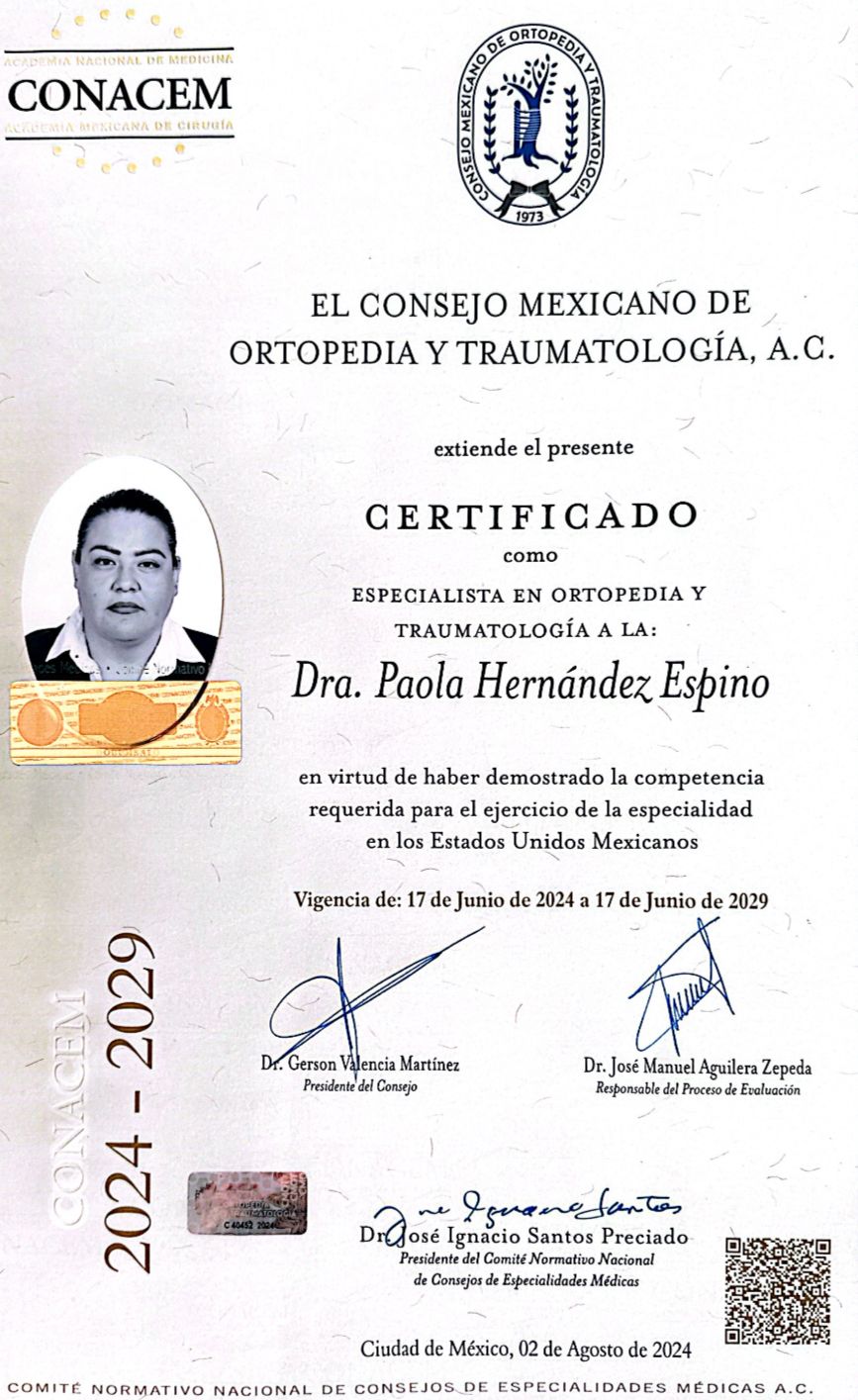 Medica Ortopedista con Especialidad en Cirugia Articular con mas de 10 años de experiencia