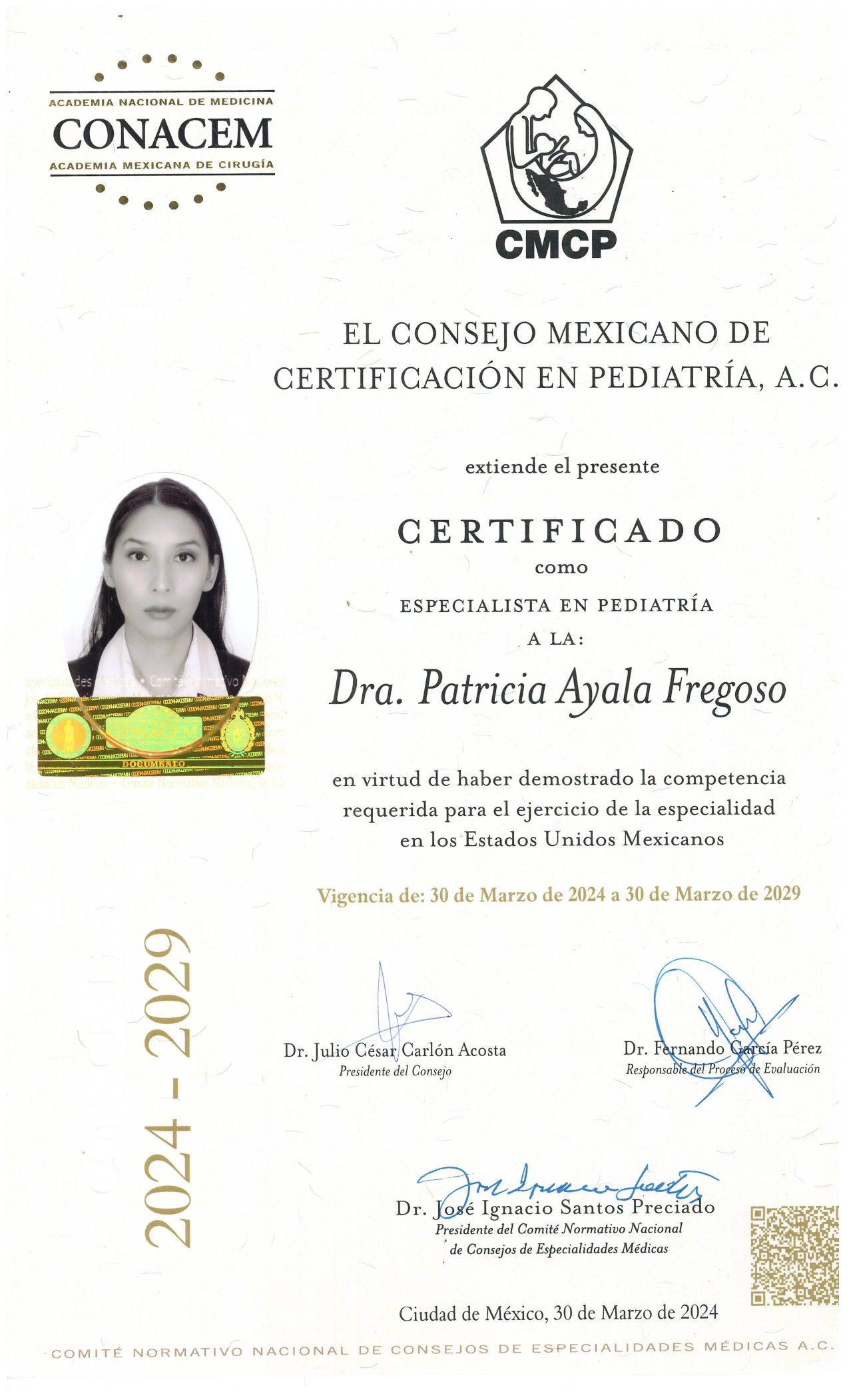 Pediatra Certificada por el Consejo Mexicano de Pediatría