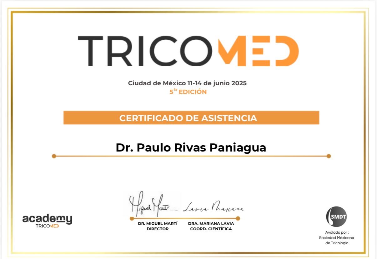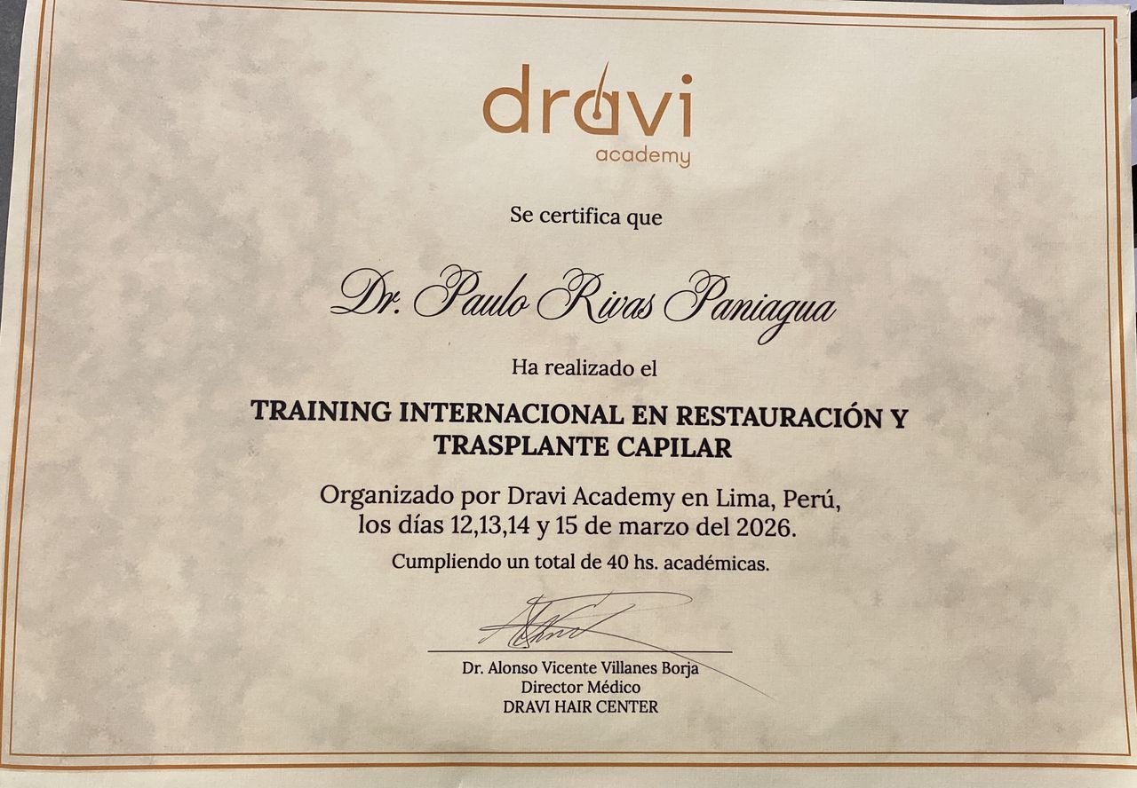 El Dr.Paulo es un excelente doctor capilar. Desde la primera consulta me explicó todo con claridad, evaluó mi caso a profundidad y diseñó un tratamiento totalmente personalizado. Se nota su experiencia, su ética y el gusto que tiene por lo que hace. Mi cabello ha mejorado muchísimo desde que estoy con él. Lo recomiendo 100% si buscas un especialista confiable, actualizado y realmente comprometido con sus pacientes.