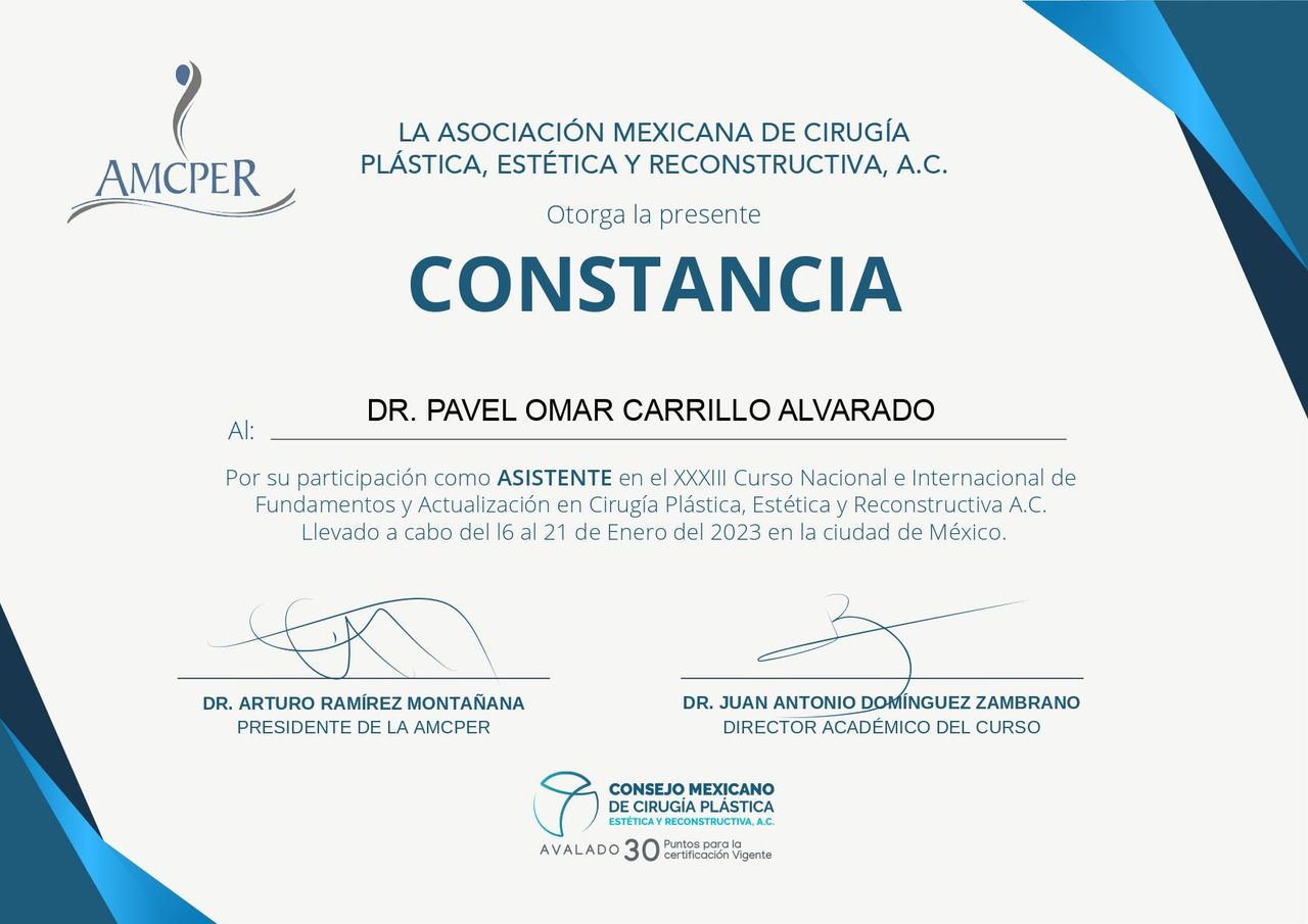 Soy Médico Especialista en Cirugía Plástica y Reconstructiva, egresado de la Universidad Nacional Autónoma de México (UNAM) y certificado por el Consejo Mexicano de Cirugía Plástica, Estética y Reconstructiva A.C.