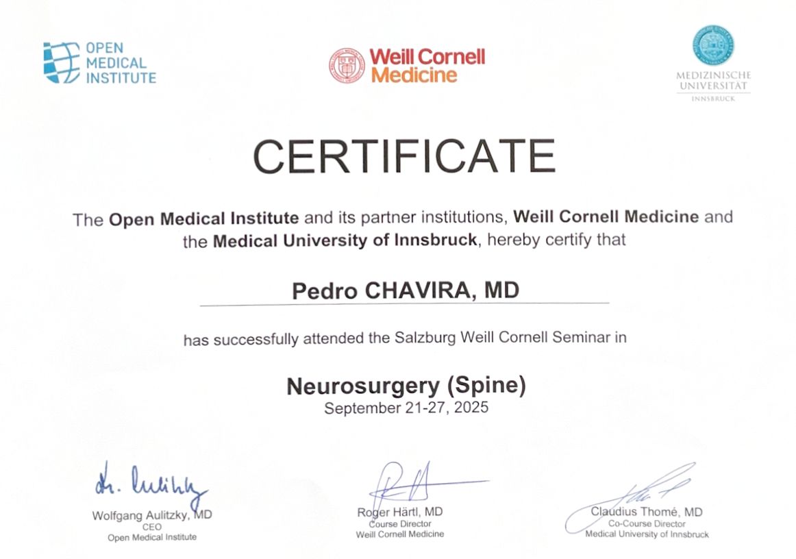 • Cirugía de Columna Mínimamente Invasiva y Preservación de Movimiento, Cirugía Ortopédica articular y prótesis • Otro •