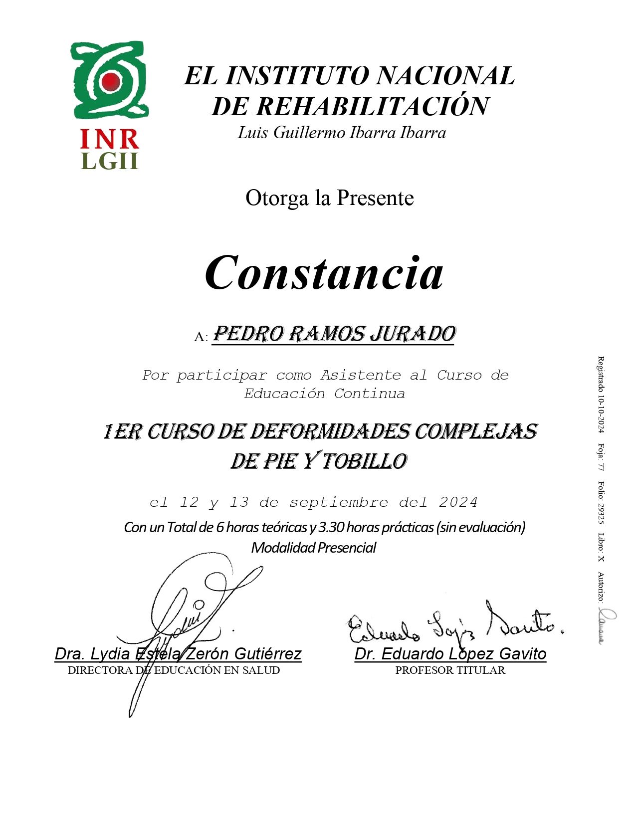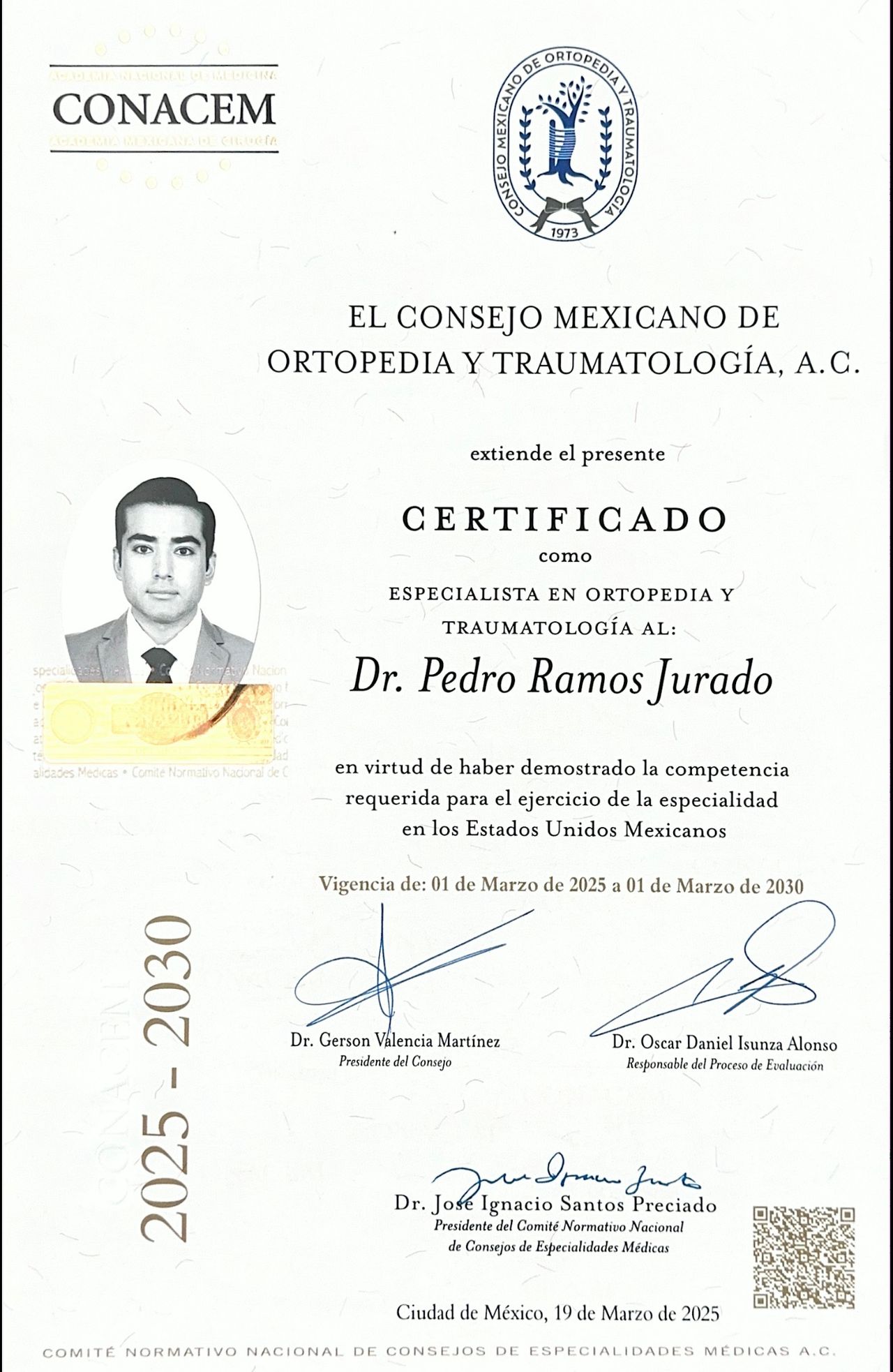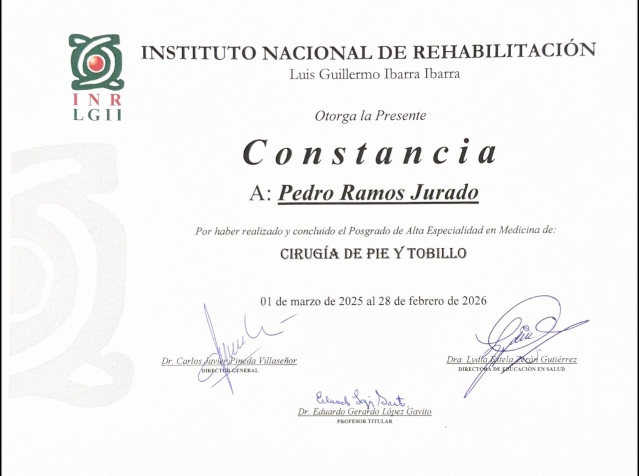 Soy el Dr. Pedro Ramos Jurado, especialista en Ortopedia y Traumatología con Alta Especialidad en Cirugía de Pie y Tobillo.