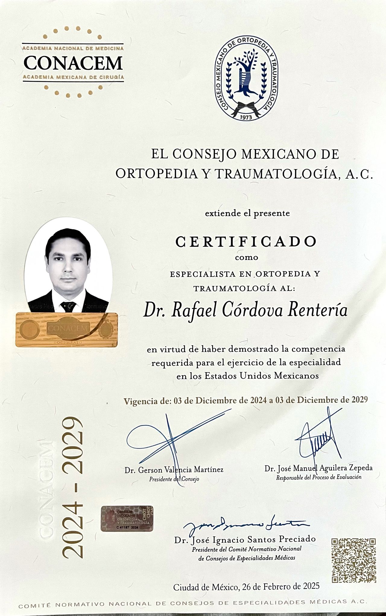 • Certificado por el Consejo Mexicano de Ortopedia y Traumatología CMOT