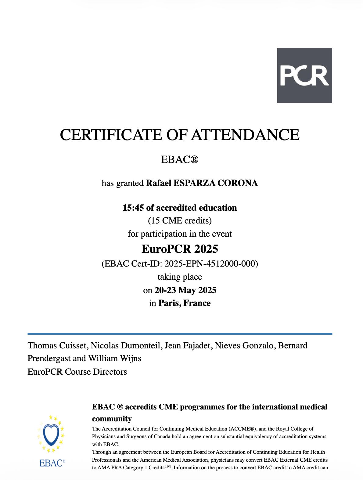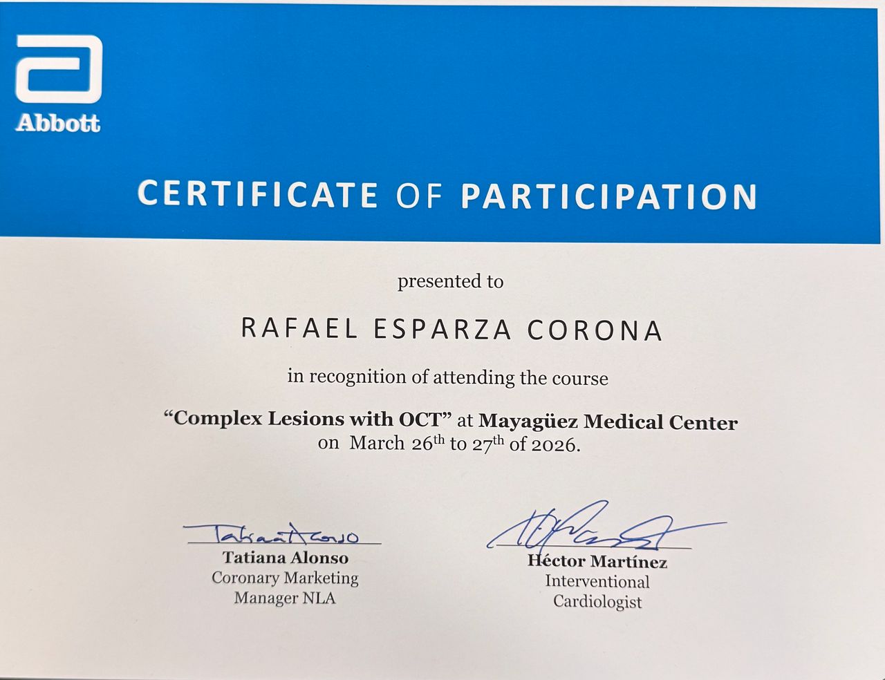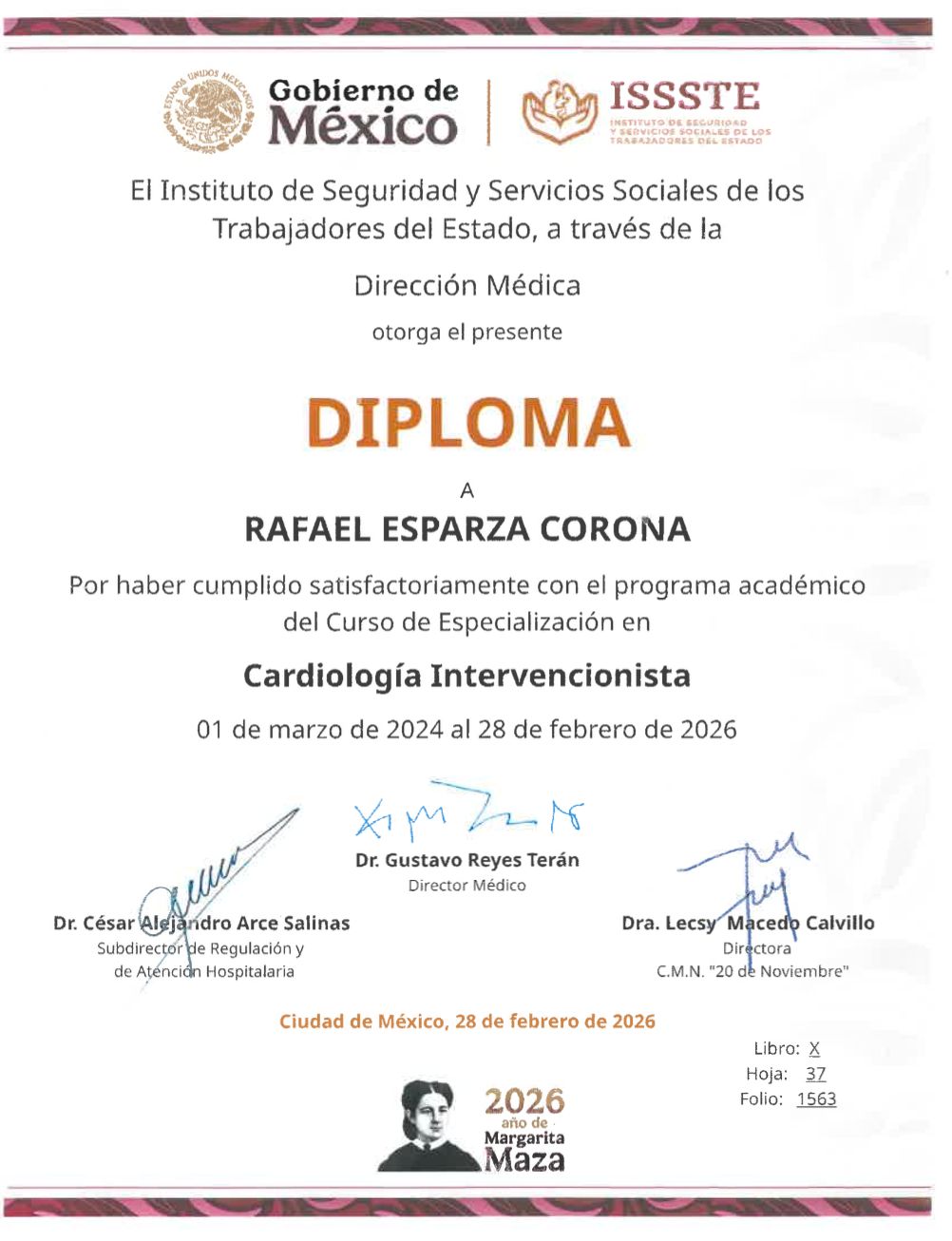 Soy el Dr Rafael Esparza Corona médico especialista. Estudié Medicina en la Universidad Autónoma de Querétaro, realicé la especialidad en Medicina Interna en la Universidad Autónoma de Nuevo León, y posteriormente me formé en Cardiología Clínica y Cardiología Intervencionista en el Centro Médico Nacional 20 de Noviembre, avalado por la Universidad Nacional Autónoma de México (UNAM).