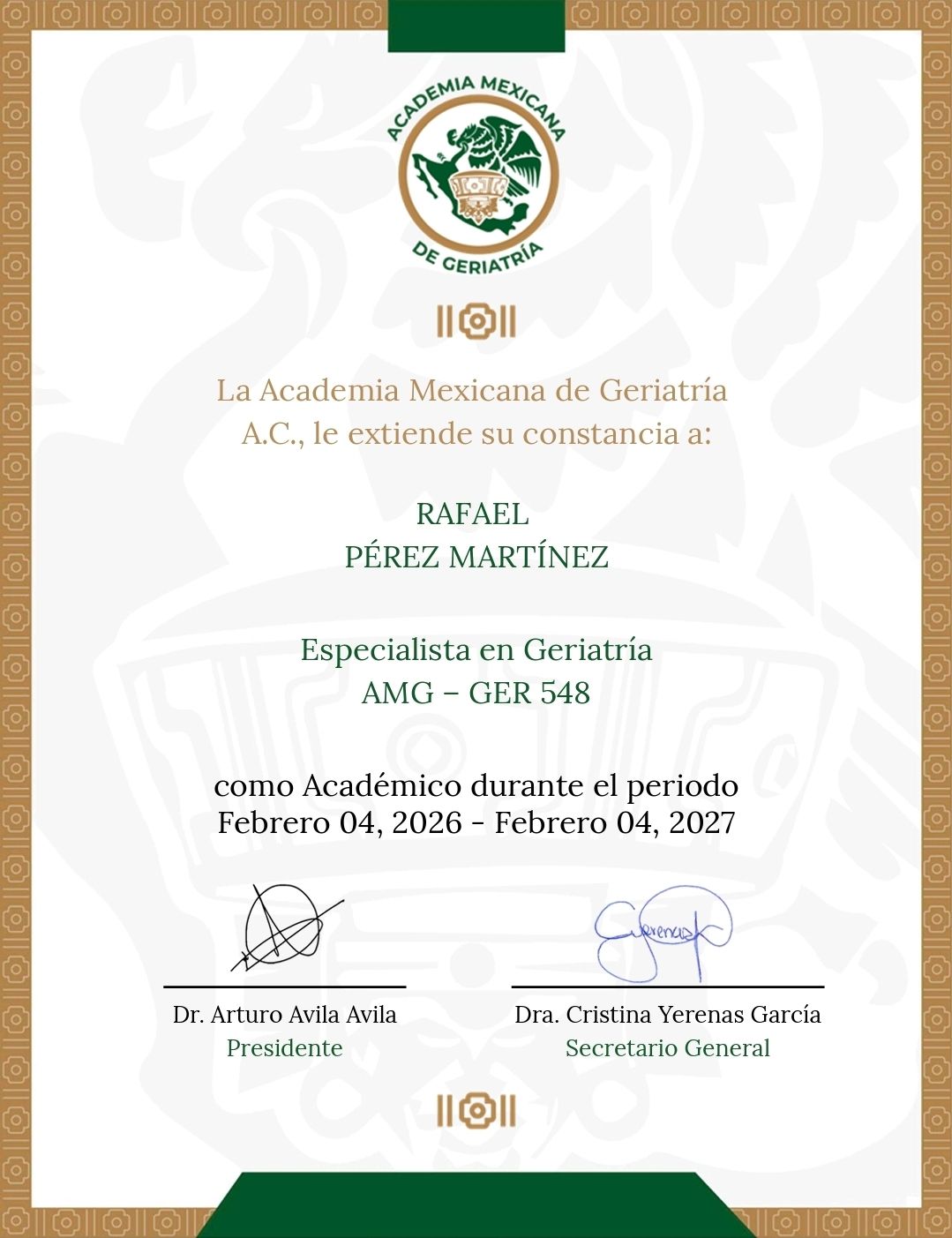 Experto en la atención del adulto mayor.Certificado por Consejo Mexicano de Geriatría A.CLos pacientes valora mi empatia.