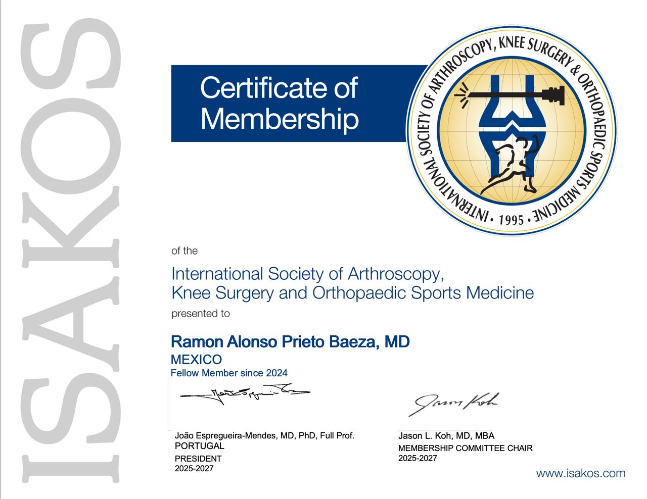 Cuento con certificación vigente por el Consejo Mexicano de Ortopedia y Traumatología y soy miembro de ISAKOS, lo que respalda una práctica médica actualizada y alineada con estándares internacionales. Mi enfoque está orientado al diagnóstico preciso, tratamientos personalizados y soluciones quirúrgicas modernas, con el objetivo de recuperar la movilidad, disminuir el dolor y mejorar la calidad de vida de mis pacientes.