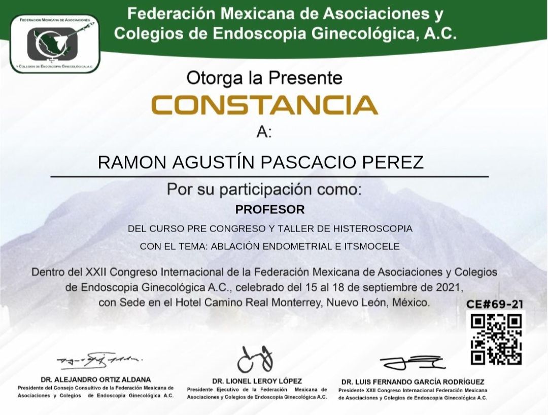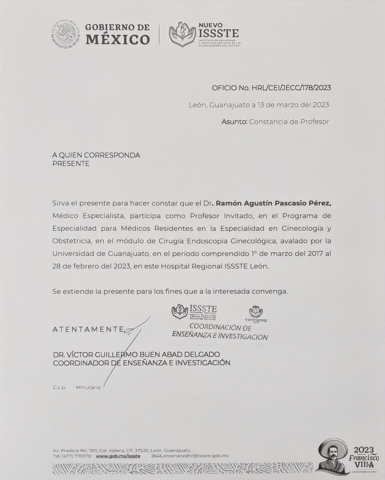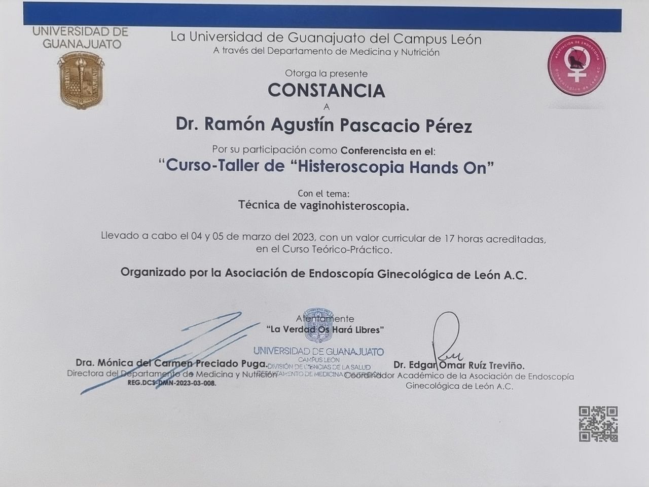 Profesor en Histeroscopia y Jefe de Obstetricia
