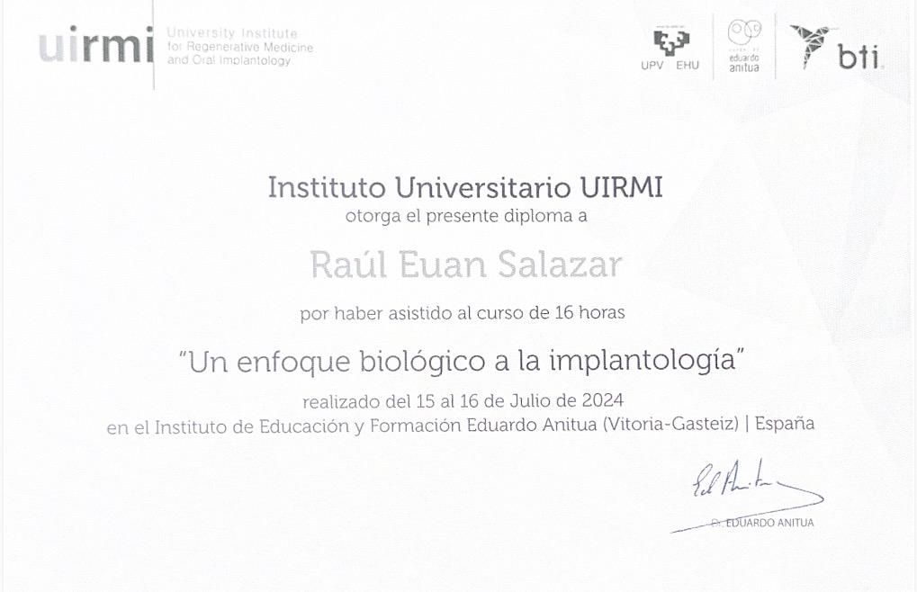 Mi experiencia en tecnología CAD/CAM se extiende por más de 14 años, con capacitación en Europa y Estados Unidos. Poseo el entrenamiento avanzado "Train the Trainer" que me certifica como un experto en el sistema CEREC, una herramienta revolucionaria en la odontología moderna.