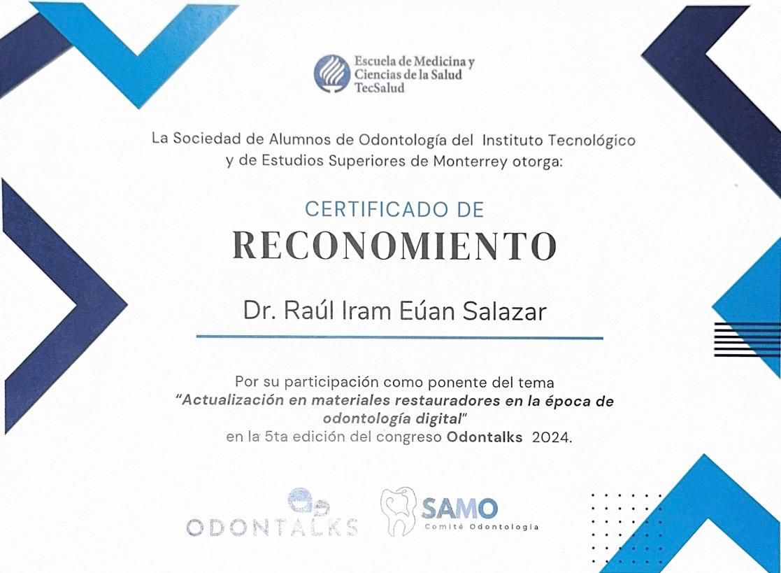 Como conferencista en diversos congresos y reuniones científicas, me mantengo al tanto de las últimas tendencias y avances en odontología. Además, soy miembro del American Academy of Fixed Prosthodontics, miembro activo del Colegio Mexicano de Prostodoncia de N.L. y líder de opinión de los productos 3M y Kerr Dental.
