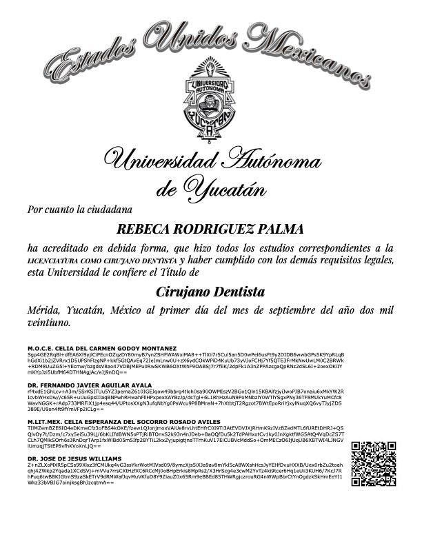 Mi formación incluye 6 años de licenciatura en odontología y 3 años de posgrado en ortodoncia,en la Universidad Autónoma de Yucatán respaldada por el reconocimiento de Desempeño de Excelencia otorgado por el Centro Nacional de Evaluación para la Educación Superior (CENEVAL), una distinción que avala el compromiso con la calidad académica y profesional.