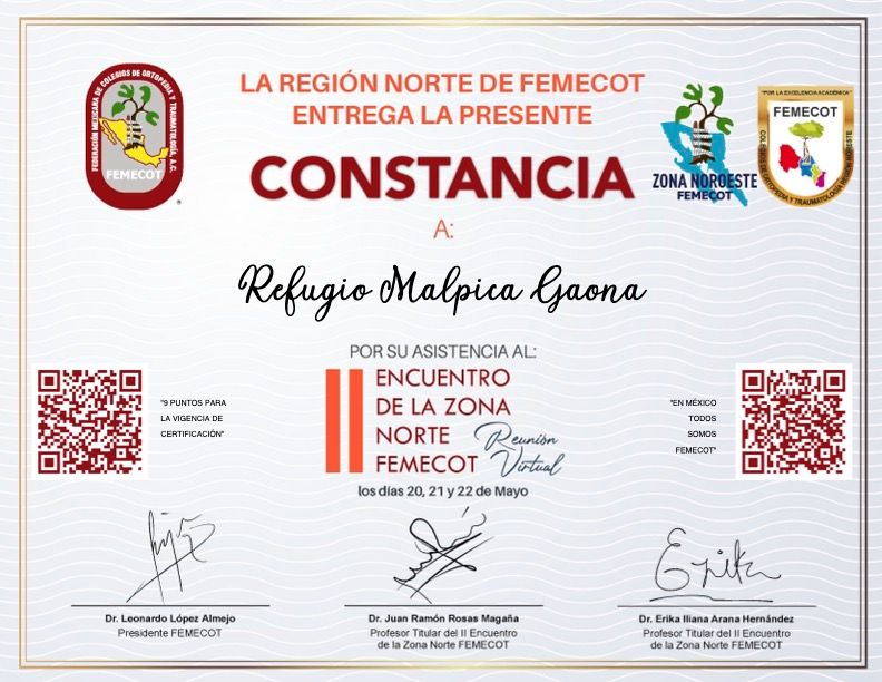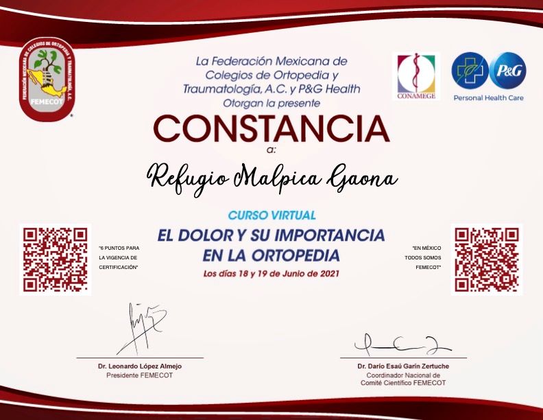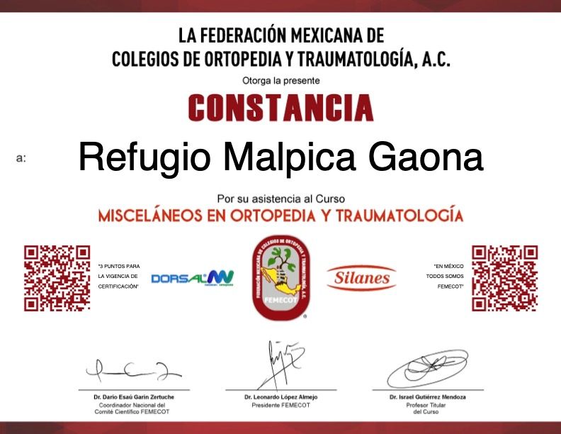 Médico Cirujano Militar Certificado con Alta Especialidad en Ortopedia y Traumatología. Miembro del Colegio Mexicano de Ortopedia y la Asociación de Médicos Militares Ortopedistas y del Colegio de Médicos Militares.