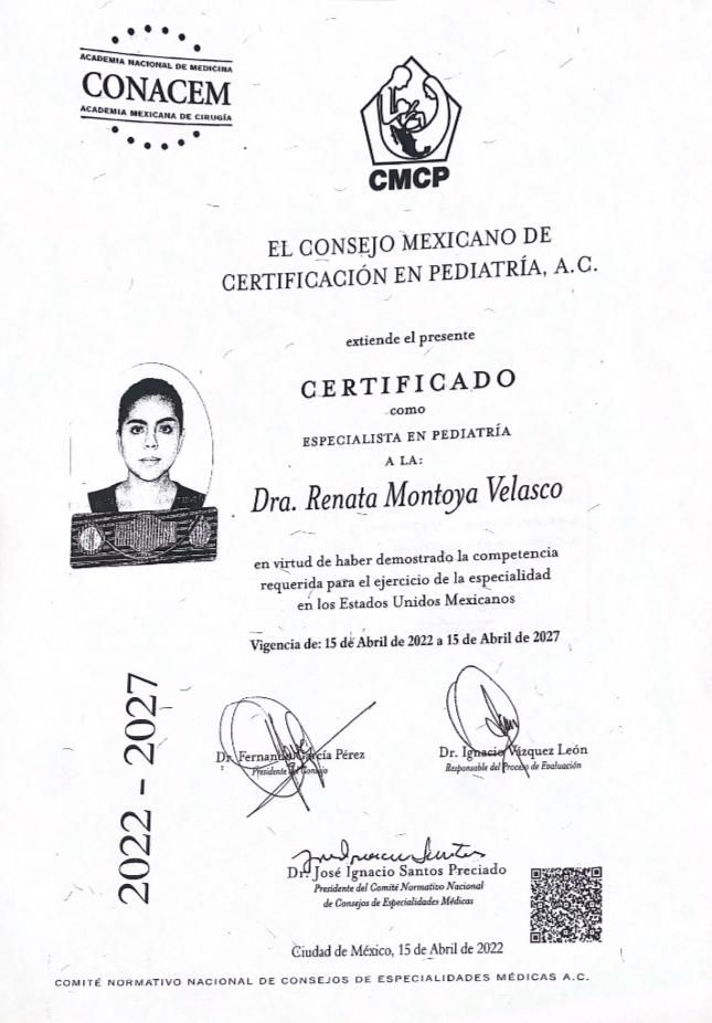 Certificada por el Colegio Mexicano de Pediatría 24711