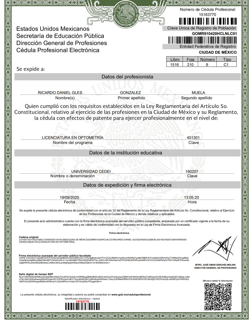 Soy un profesional apasionado por la salud visual y mi objetivo es ayudarte a que veas el mundo con total claridad. Entiendo que cada paciente tiene necesidades diferentes, por eso en mi consulta no solo realizo una graduación, sino que me tomo el tiempo necesario para escuchar tus molestias y entender tu estilo de vida.