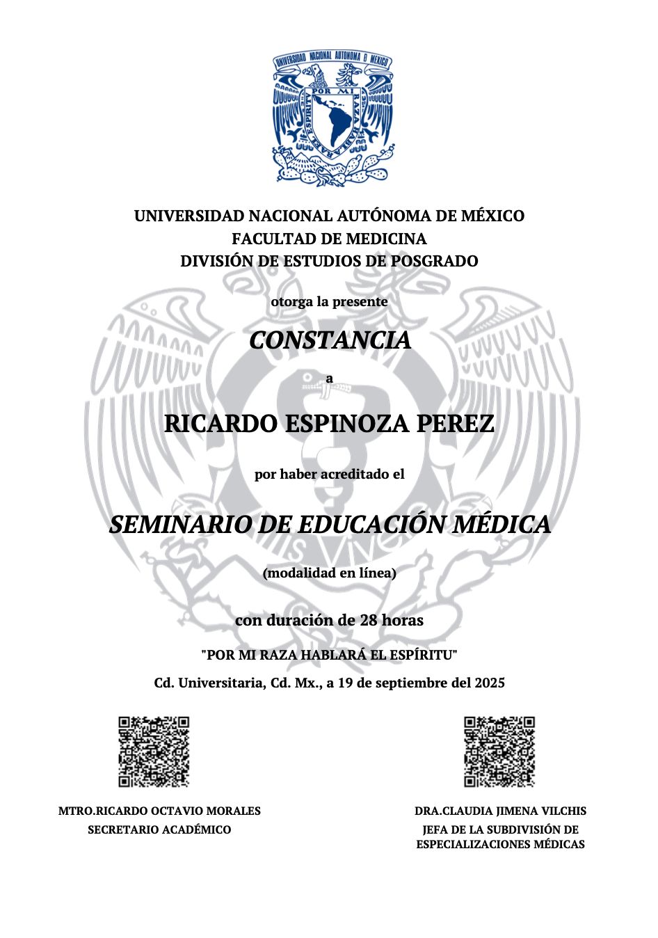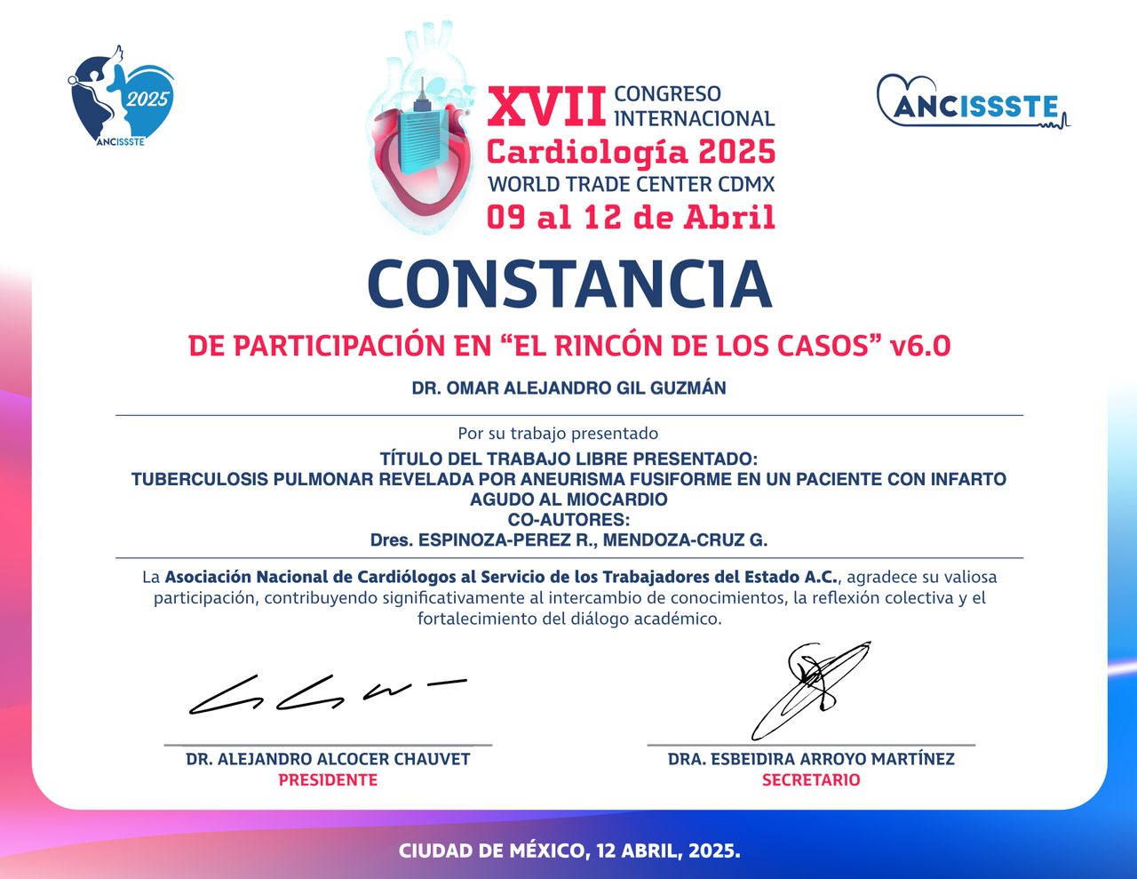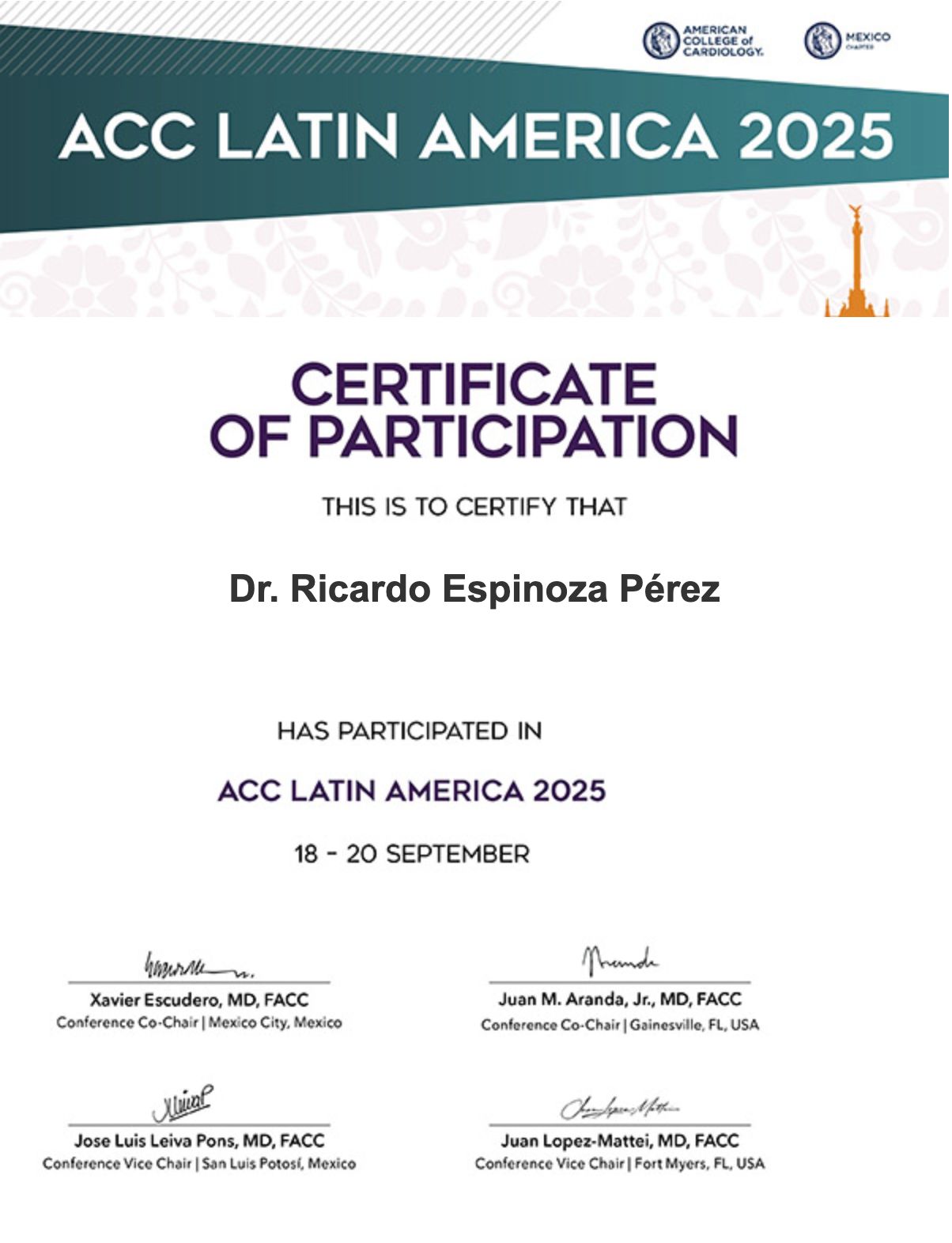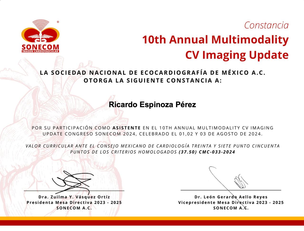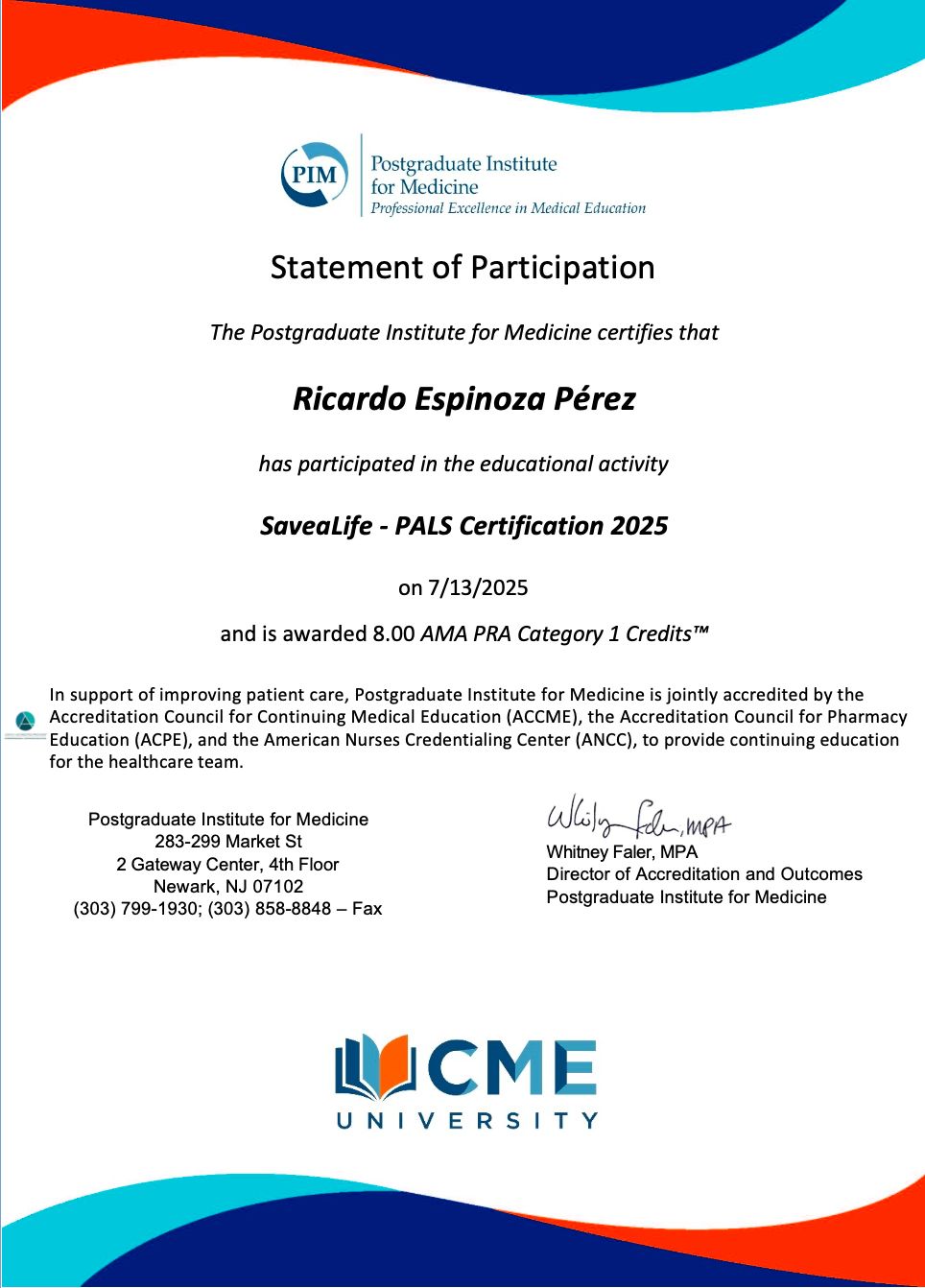 Actualmente, estoy profundizando mi formación como Cardiólogo, cursando la subespecialidad con el respaldo de la Universidad Nacional Autónoma de México (UNAM).