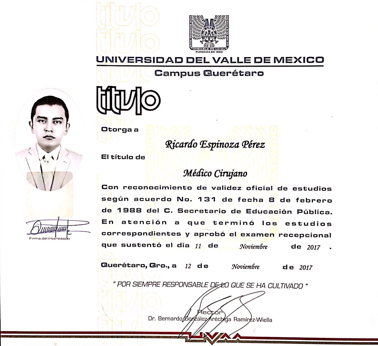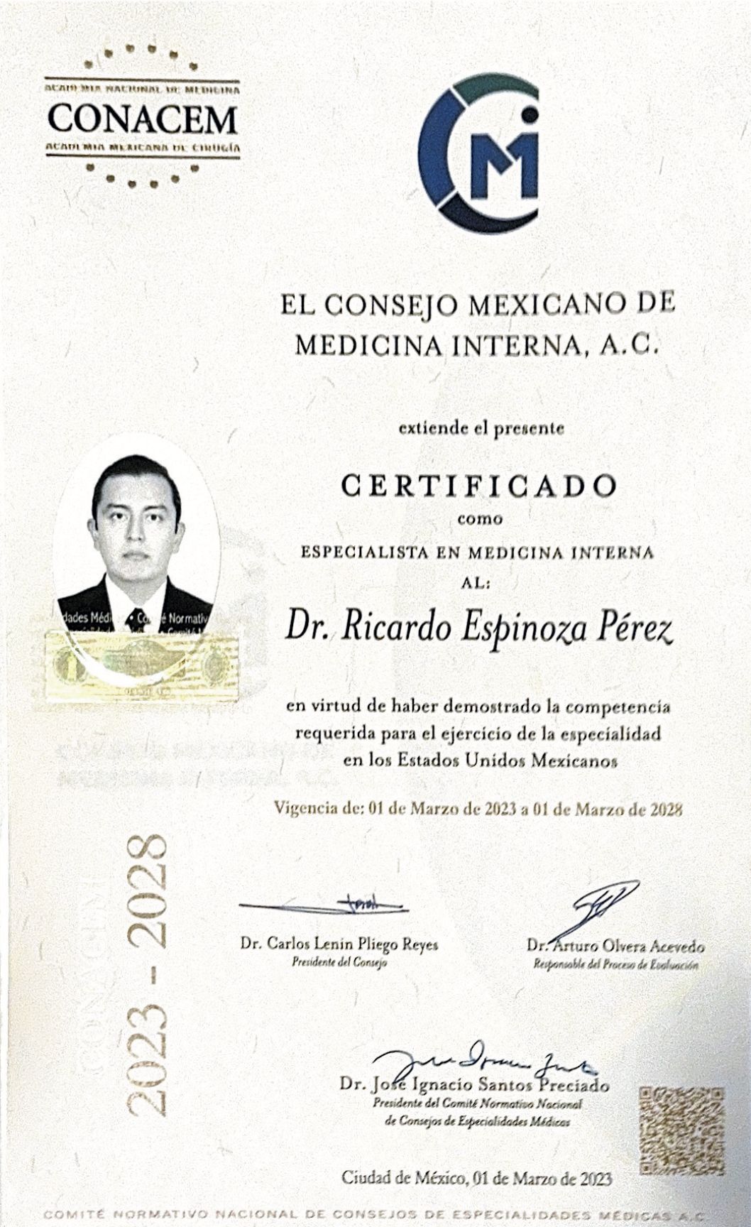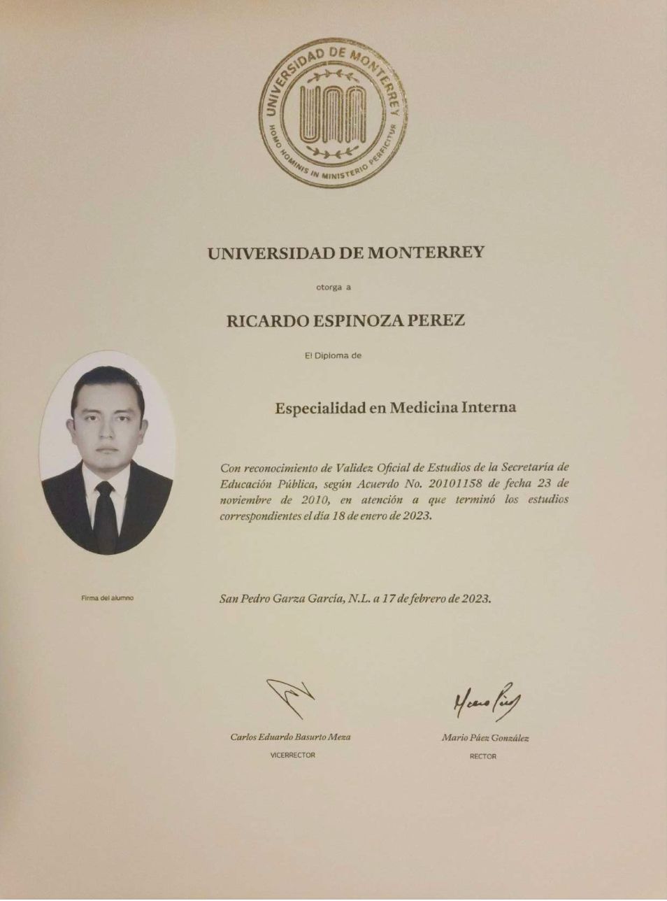 Soy egresado de la Licenciatura en Medicina por la Universidad del Valle de México (UVM), Campus Querétaro, lo que sentó las bases de mi formación. Posteriormente, me especialicé en Medicina Interna con aval de la prestigiosa Universidad de Monterrey (UDEM). Esta especialidad me permite tener una visión integral para diagnosticar y tratar enfermedades complejas en adultos.
