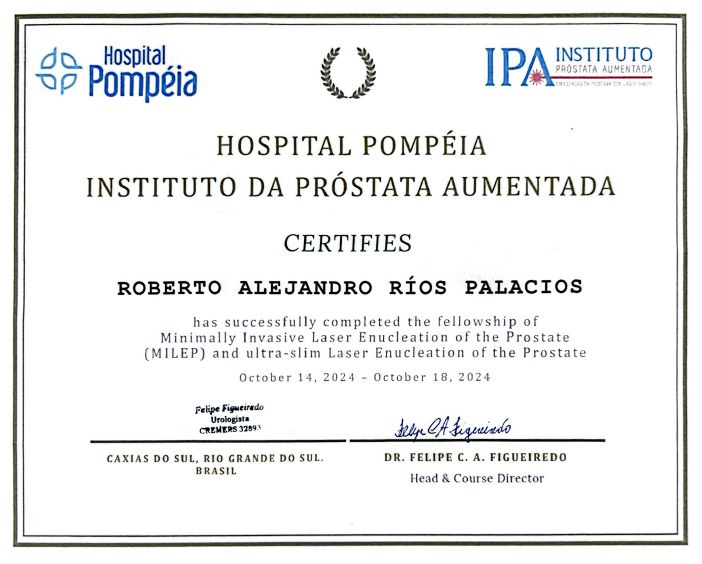 Soy un urólogo capacitado con un enfoque innovador en el tratamiento de mis pacientes. Mi formación en técnica de vanguardia y minimamente invasivas me permite ofrecer soluciones que se traducen en una recuperación más rápida, menos dolor y mejores resultados. Mi compromiso con la excelencia y la constante actualización en las técnicas más avanzadas me permite brindar un servicio de calidad, personalizado y seguro. Si buscas un profesional con experiencia y tecnología de punta, estoy aquí para ayudarte.