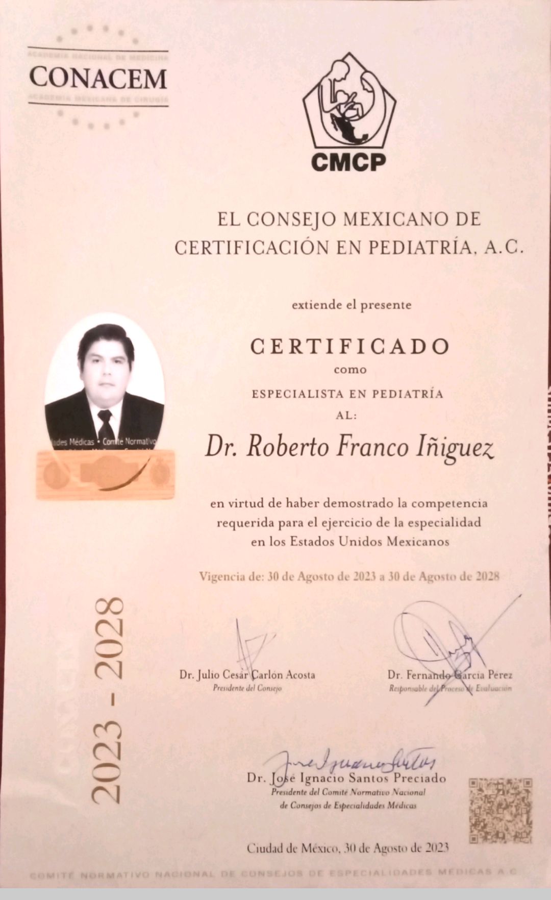 La atención del Dr Roberto es excelente, el ha visto a mi hija desde su nacimiento, explica todo detalladamente y cuida mucho el bienestar de bebe.