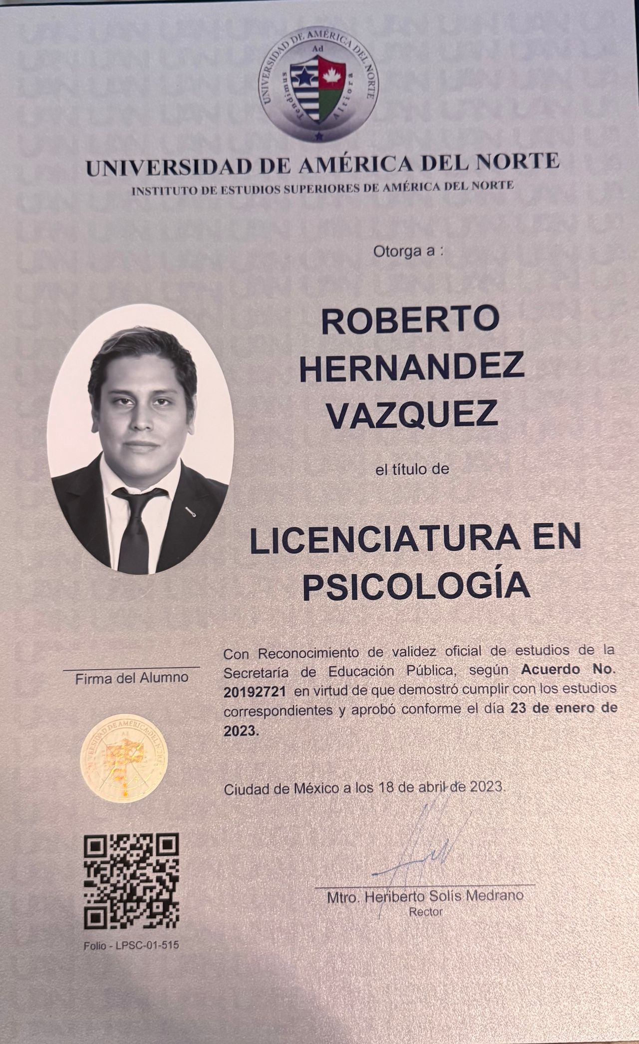 Roberto es un excelente psicólogo, seguimos en terapia por un tema de adicciones, no ha sido fácil, pero desde el inicio hemos sentido su compromiso, empatía y profesionalismo, además de ver cambios satisfactorios. Aparte su calidad humana lo distingue, su comprensión y flexibilidad ante momentos difíciles.