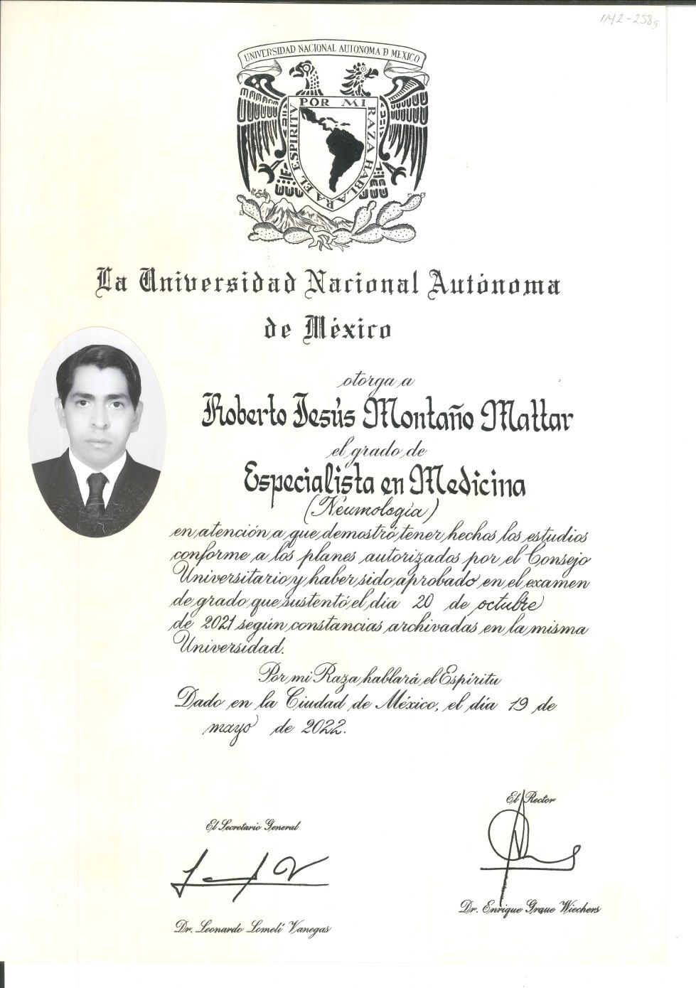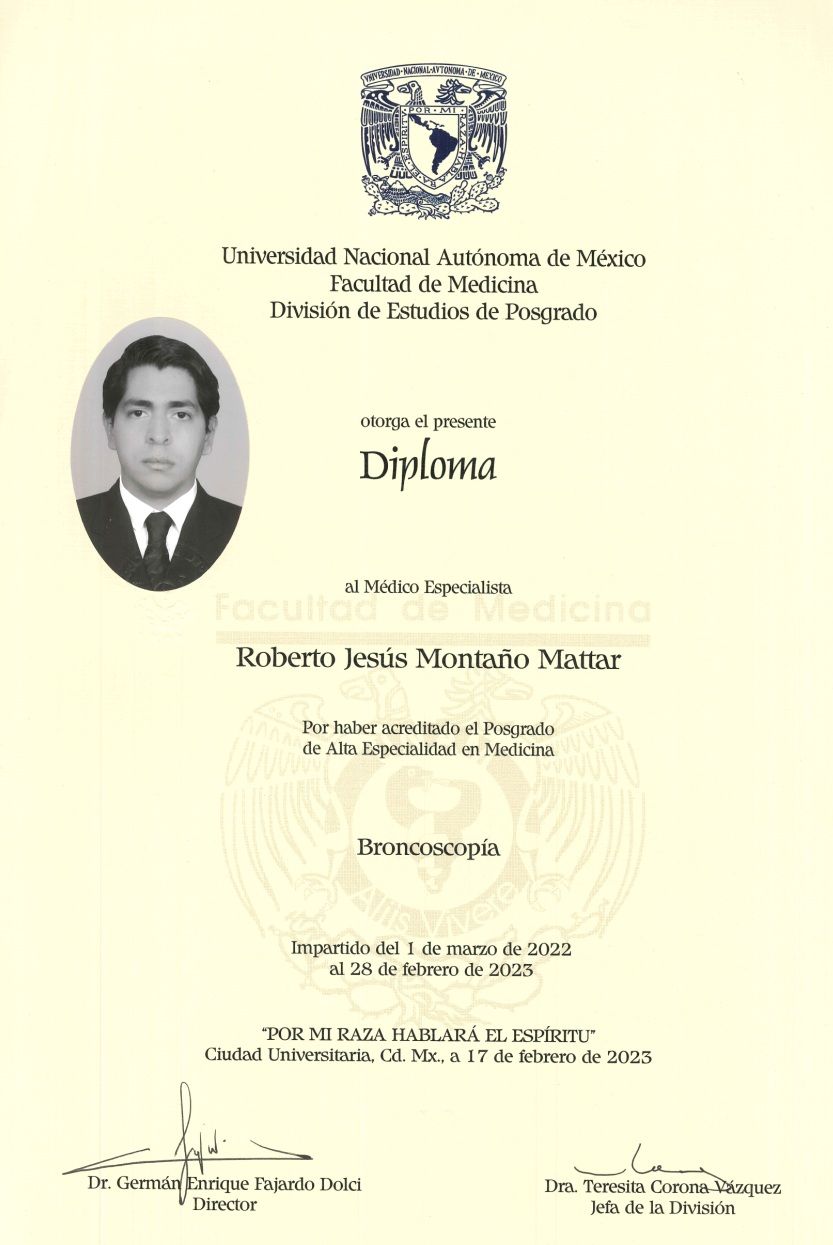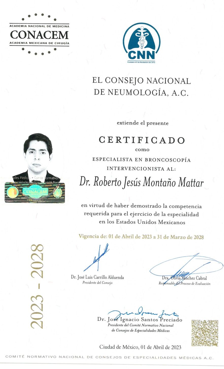 Realicé el alta especialidad en Broncoscopia Intervencionista en el Instituto Nacional de Enfermedades Respiratorias-UNAM.
