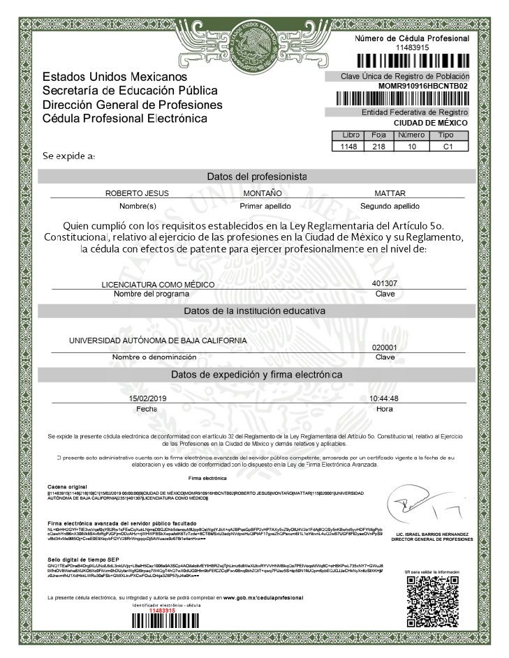 Estudié la licenciatura de Medicina y me gradué con mención honorífica de la Facultad de Medicina de la Universidad Autónoma de Baja California campus Mexicali.