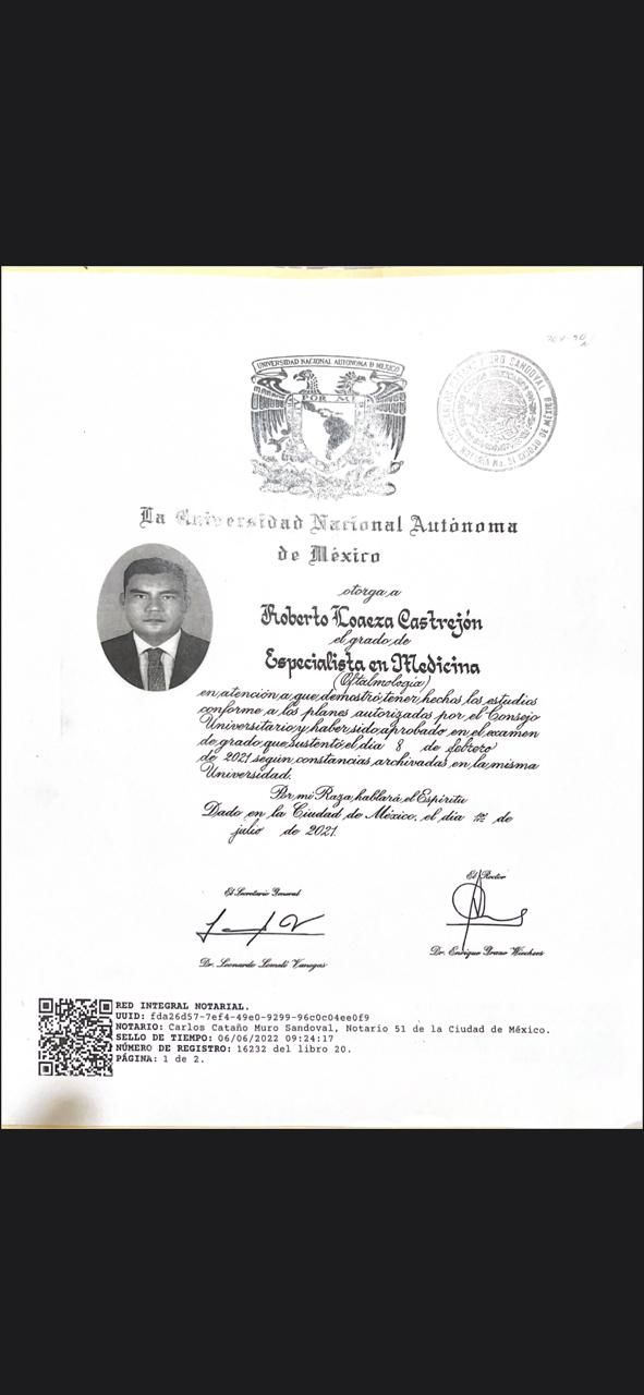 Especialidad y Alta especialidad realizada en el Instituto de Oftalmologia Conde de Valenciana. Ambos programas certificados por la Universidad Nacional Autónoma de México.