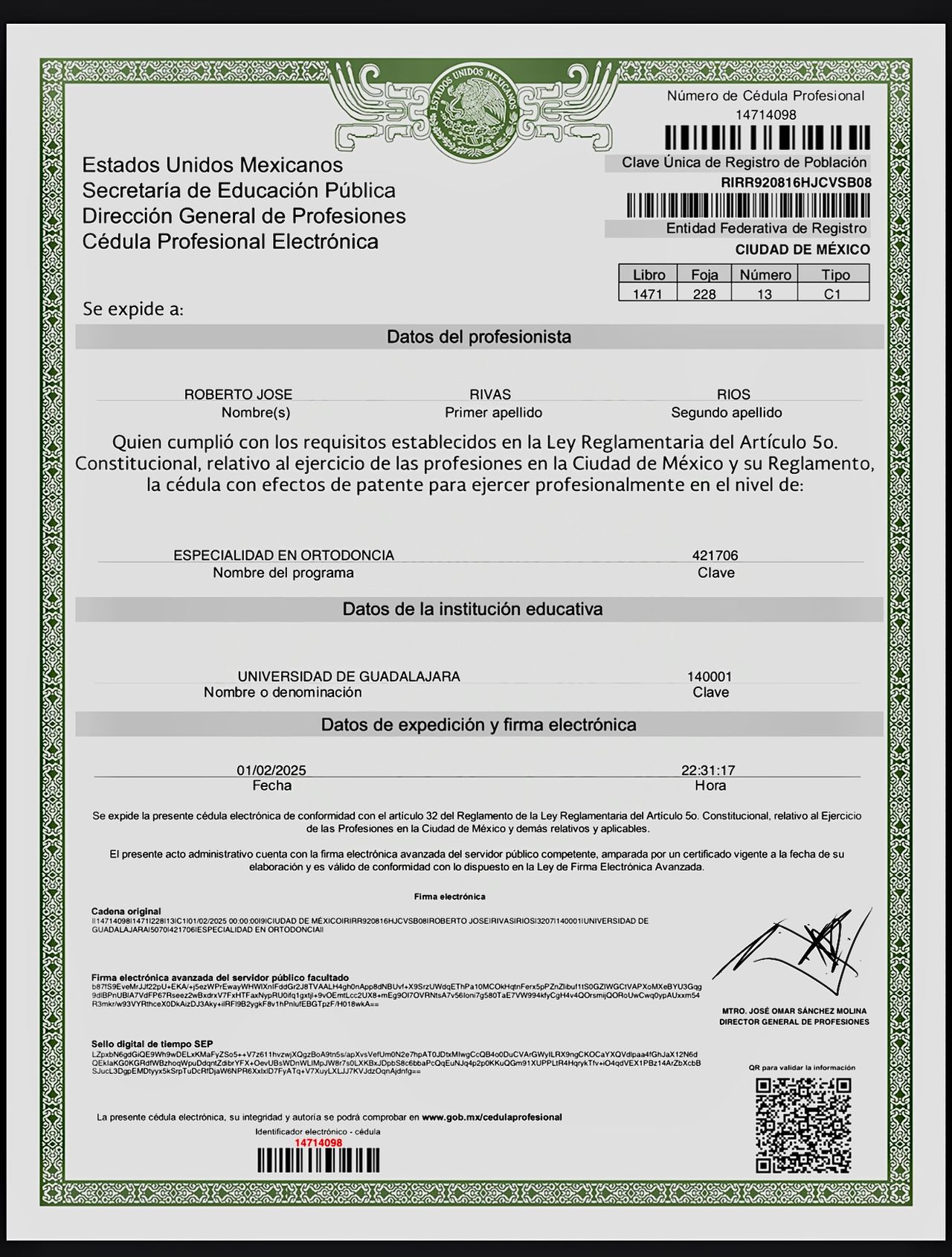 Hola, Mucho gusto, soy el Dr. Roberto Rivas; Especialista en Ortodoncia por la Universidad de Guadalajara y certificado en Ortodoncia y ortopedia maxilar por la Asociación Mexicana de Ortodoncia.