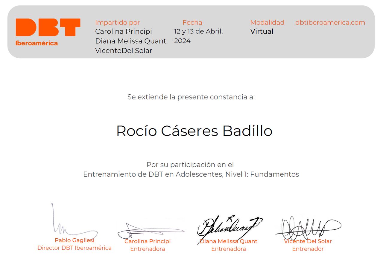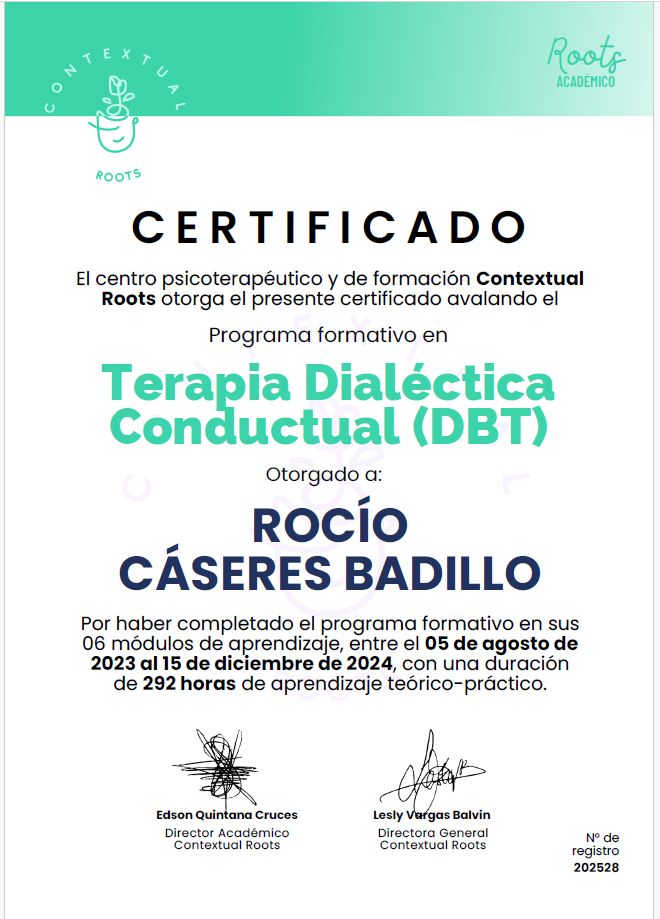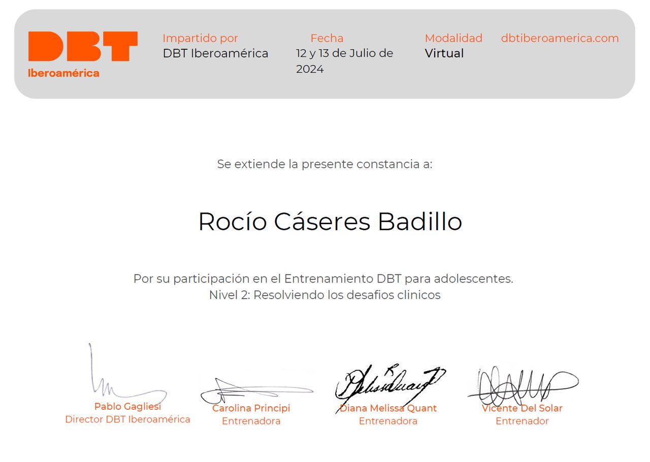 Trabajo con enfoques terapéuticos basados en evidencia como la Terapia Cognitivo-Conductual, la Terapia de Aceptación y Compromiso (ACT) y la Terapia Dialéctico Conductual (DBT), siempre adaptando las herramientas al ritmo y las necesidades de cada persona.