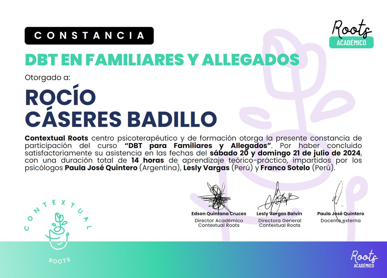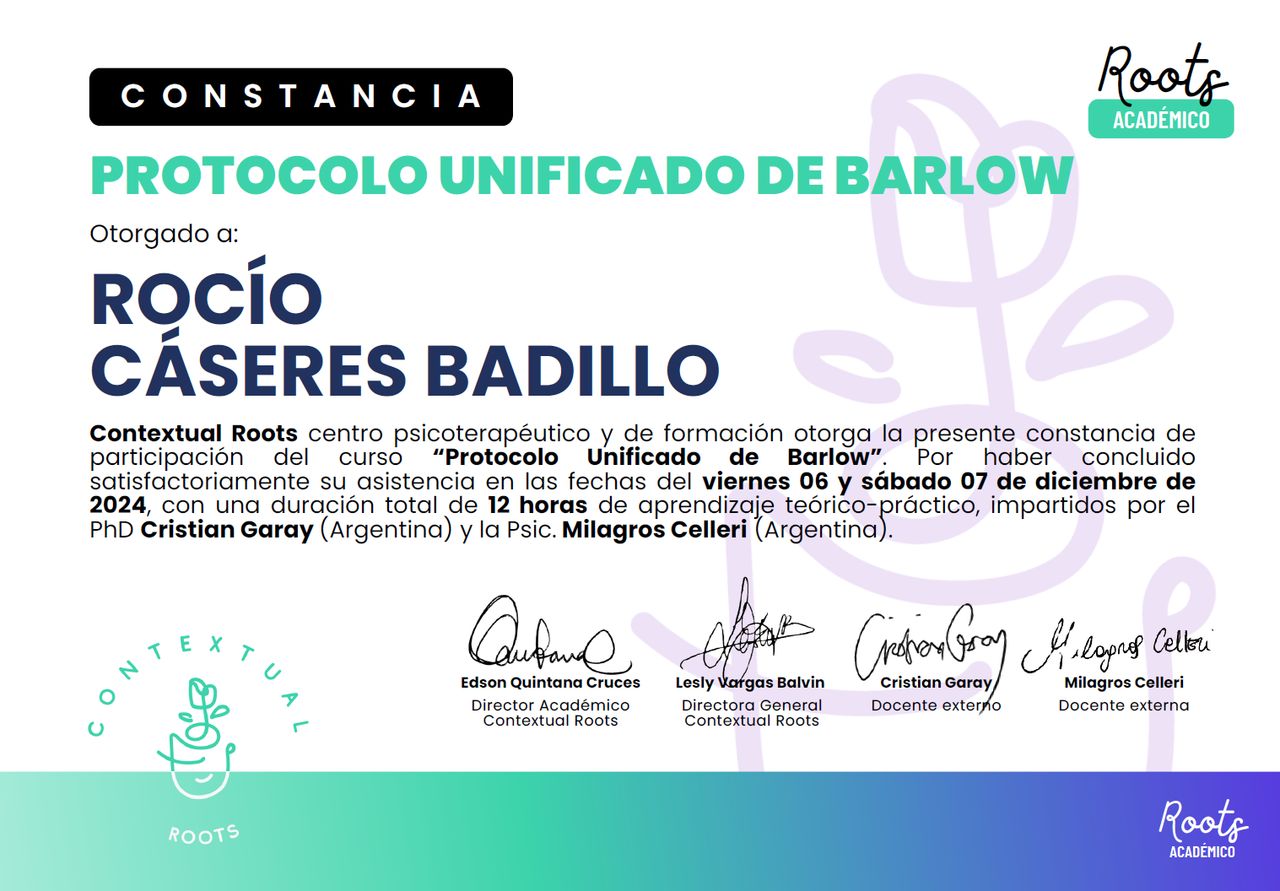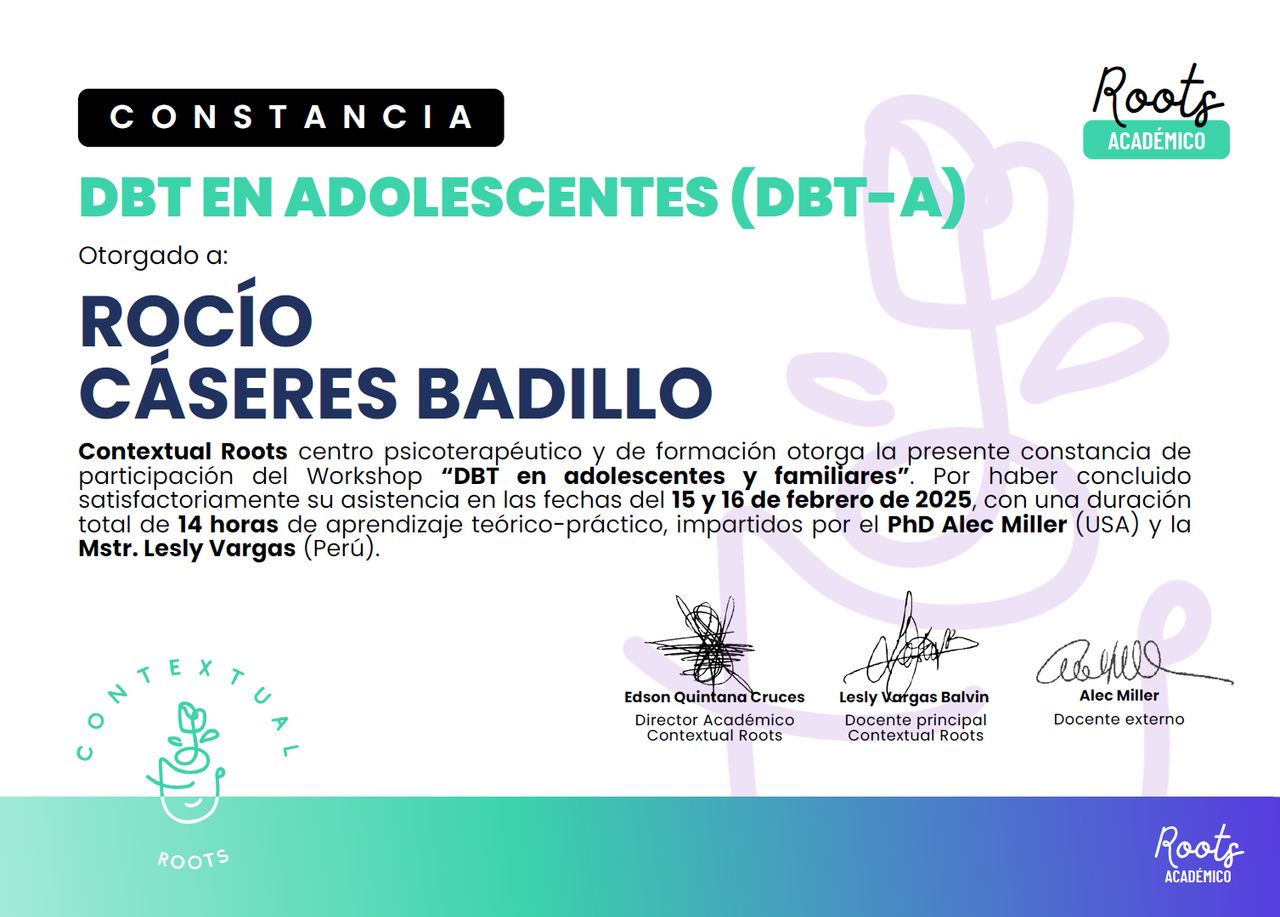 Trabajo con enfoques terapéuticos basados en evidencia como la Terapia Cognitivo-Conductual, la Terapia de Aceptación y Compromiso (ACT) y la Terapia Dialéctico Conductual (DBT), siempre adaptando las herramientas al ritmo y las necesidades de cada persona.
