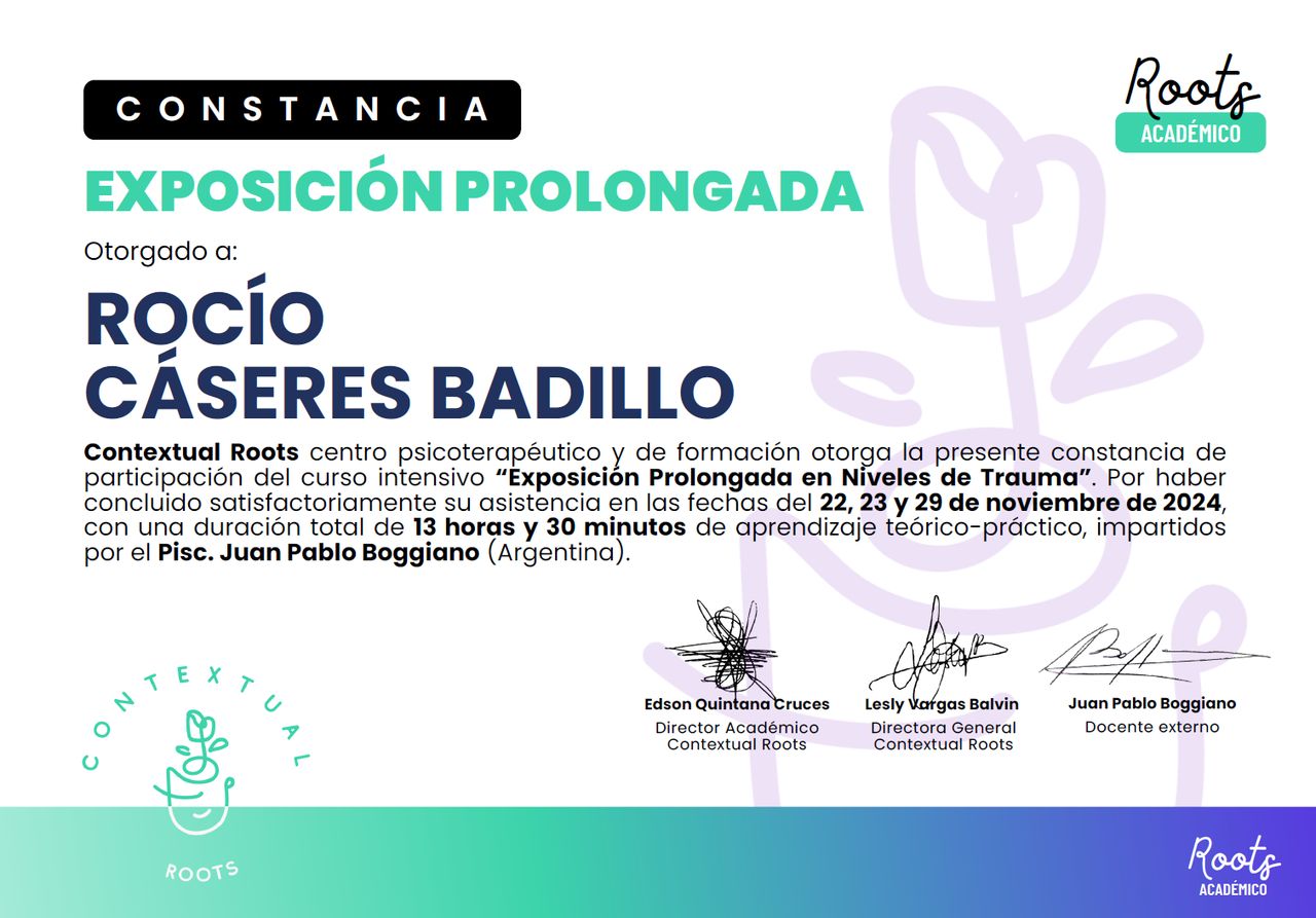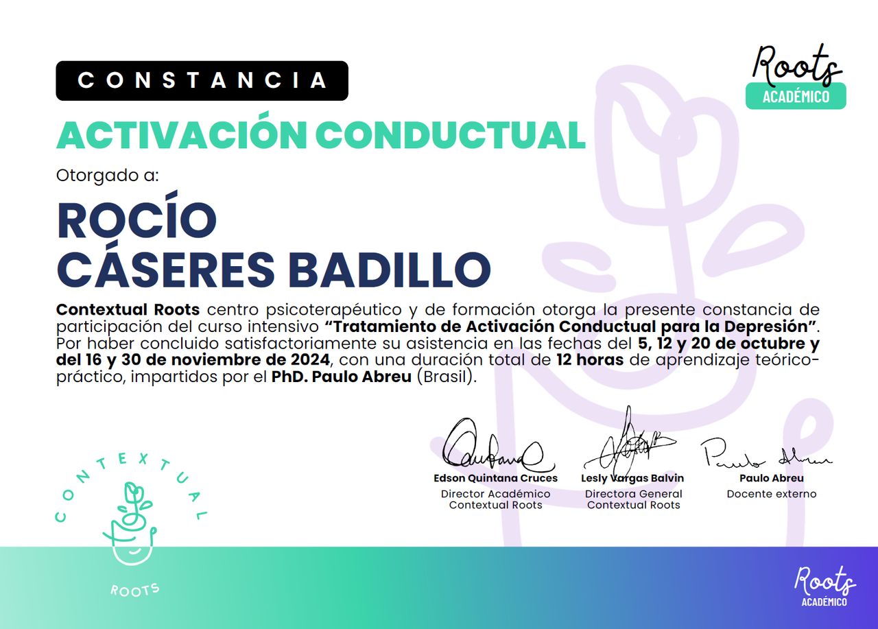 Me llena de alegría saber que el acompañamiento que te brindo ha sido valioso para ti. Tu confianza y constancia en el proceso terapéutico son fundamentales, y es un honor poder acompañarte en tu camino.