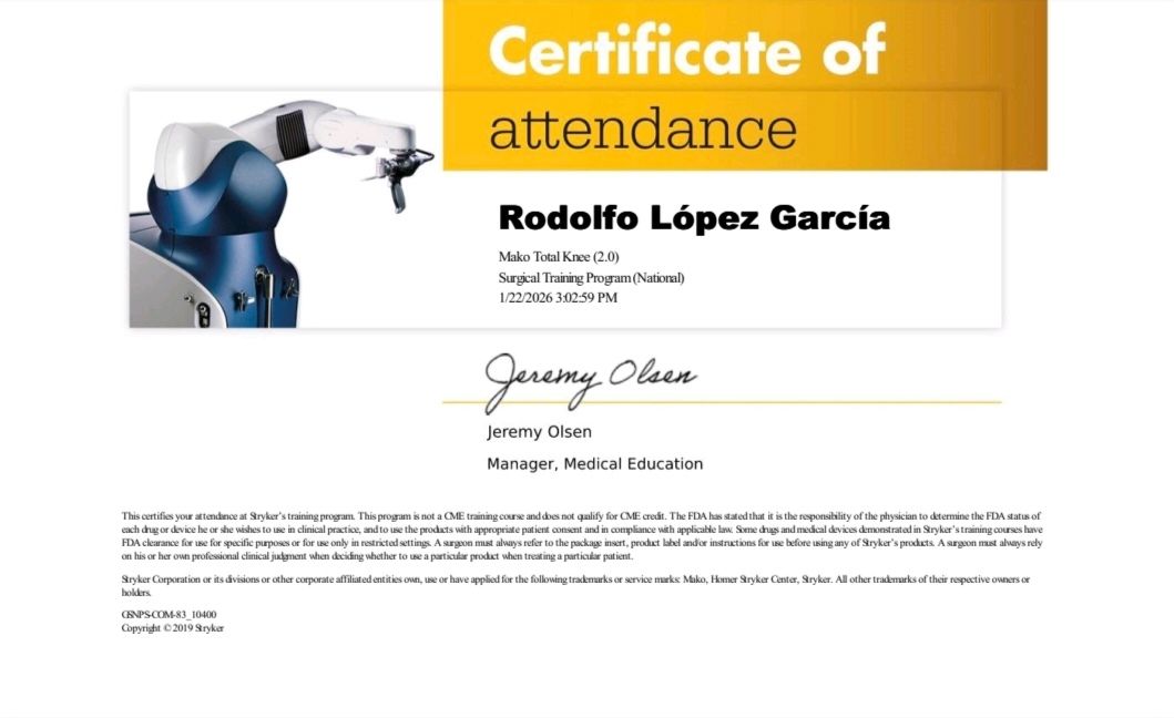 - Acreditación vigente y miembro del Consejo Mexicano de Ortopedia y Traumatología
