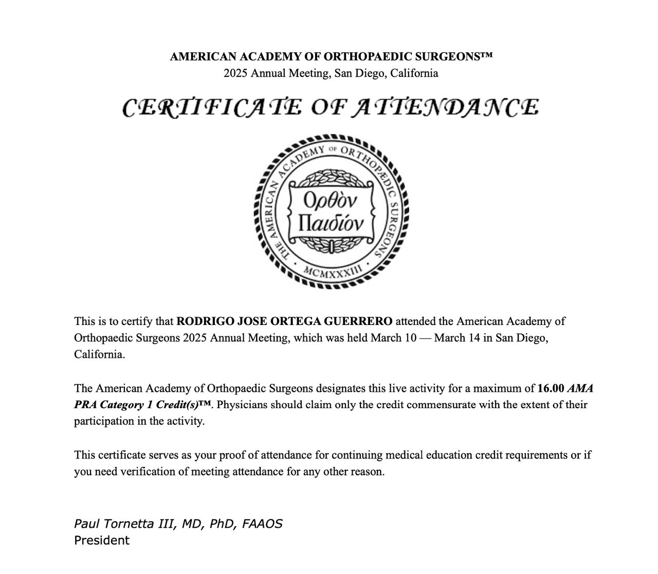 Ortopedista con Alta Especialidad en Artroscopia, Cirugía Deportiva y Cirugía Articular