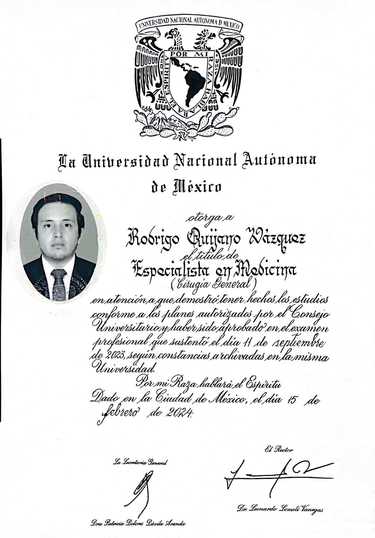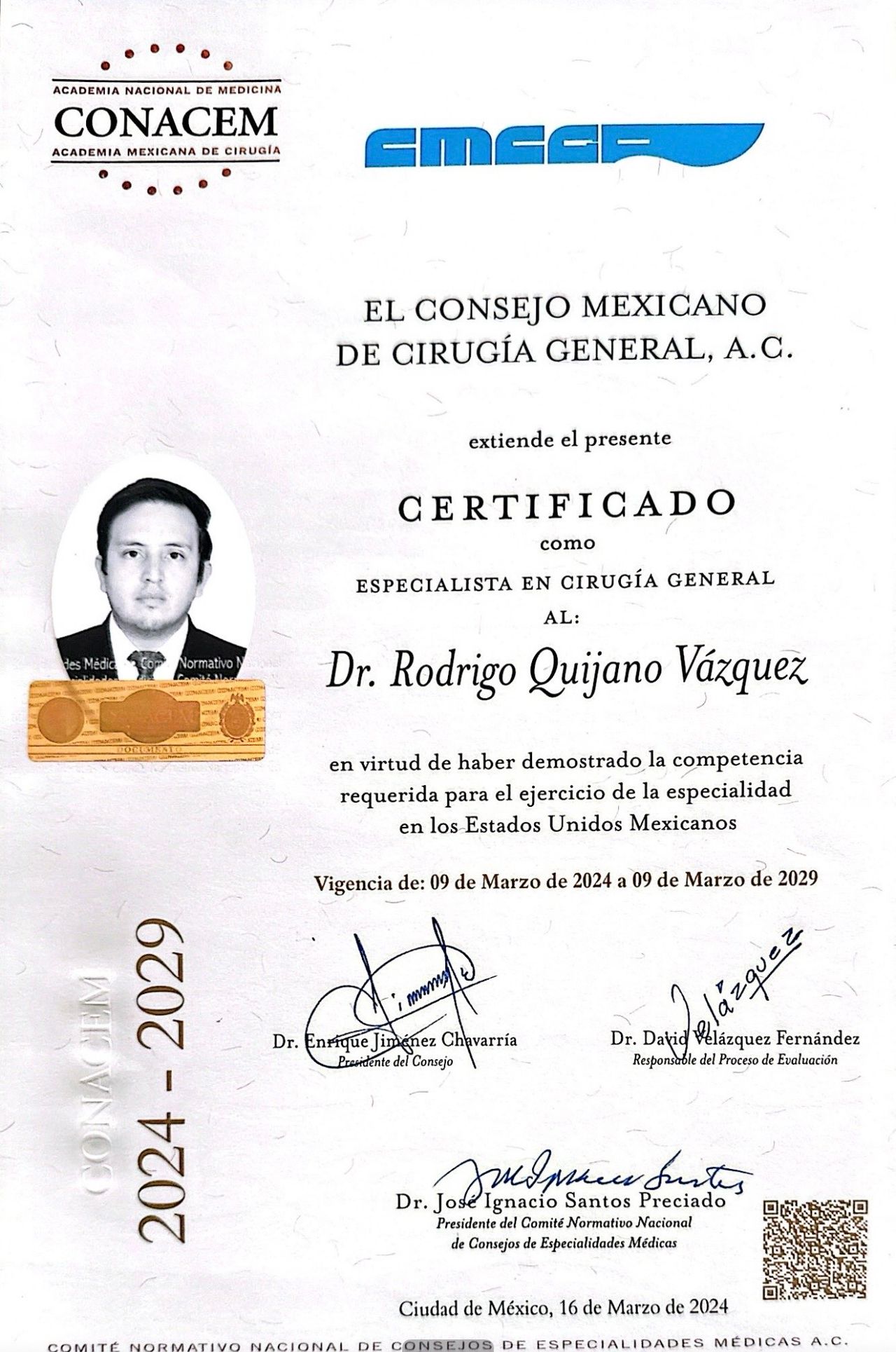 Hola, soy el Dr. Quijano, médico especialista en cirugía gastrointestinal y de mínima invasión, certificado por el Consejo Mexicano de Cirugía General, miembro activo de la Asociación Mexicana de Cirugía General, con amplia experiencia en atención a patologías complejas con manejo enfocado en cirugía laparoscópica.