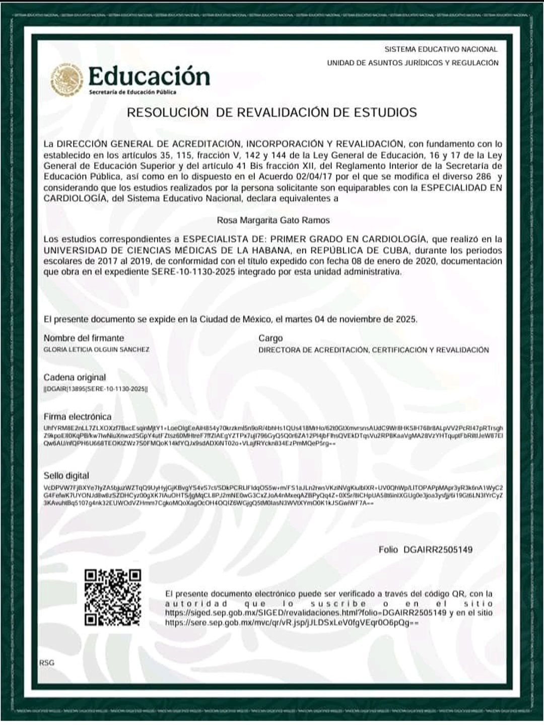 Soy especialista de Cardiologia con mas de 13 años de experiencia, formada en el Instituto de Ciencias medicas de La Habana, Cuba. Trabaje en el Hospital MilitarCarlos J Finlay , en el Hospital clinico Quirurgico Juaquin Albarran, La Habana Cuba.Estuve de misión médicainternacionalista en la República de Panamá durante la pandemia del COVID 19. Luego me fui a trabajar por contrato médico independiente a Haití, donde trabaje tanto en hospitales publicos como en privado.Mi actividad medica como especialista se enfoca en la cardiología clínica, realizando consultas de control y seguimiento de las enfermedades cardiovasculares y sus complicaciones.