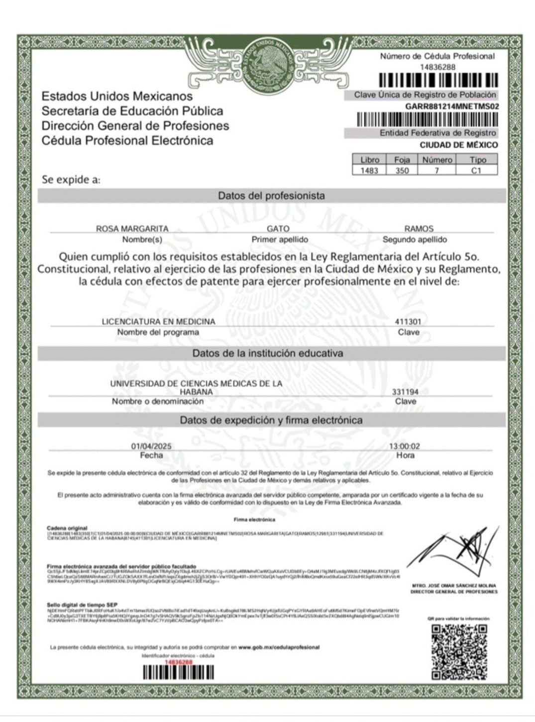 No. de cédula: 14836288