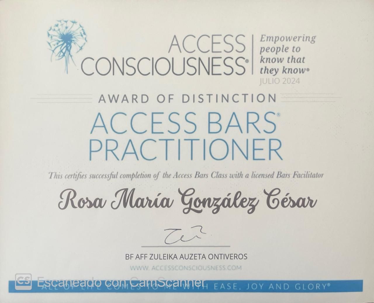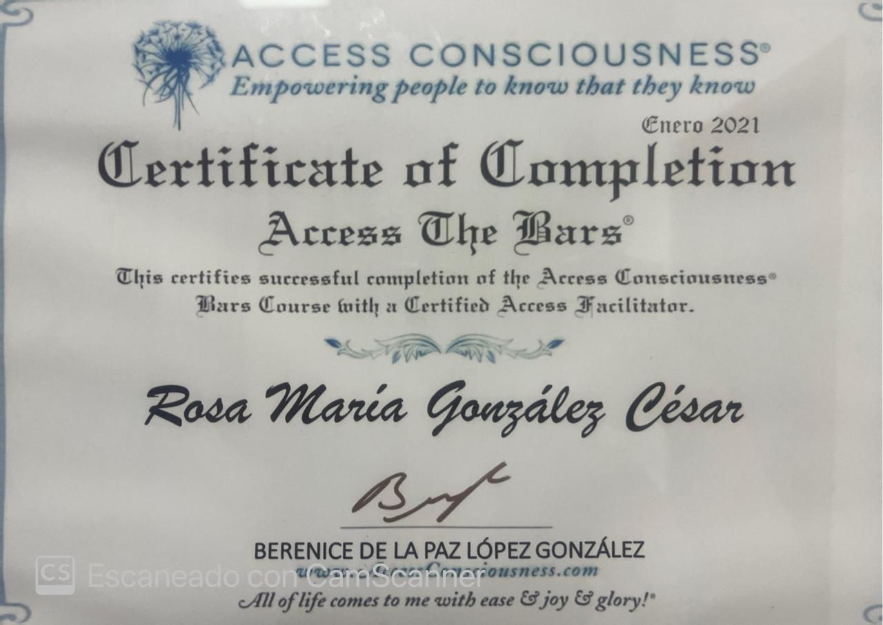 Certificada en terapias cuánticas y energéticas avanzadas (Access Consiusness y Facelift energético de Access, entre otras…)