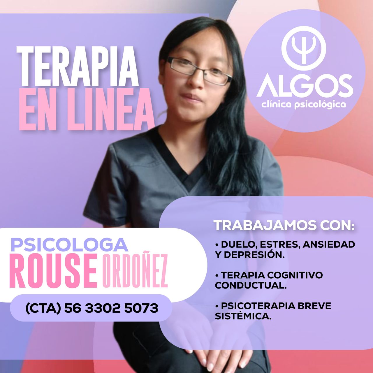 muy atenta y tiene paciencia y inspira esa confianza para continuar y te da la confianza de poder liberarte y su sesión es exacta a 60 min
