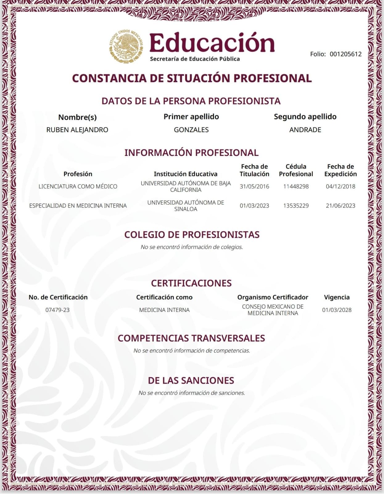 Médico Internista Certificado por el Colegio Mexicano de Medicina Interna, con formación en nuestra ciudad, conocedor de las enfermedades propias de nuestra frontera, con amplia experiencia en el manejo y control de enfermedades que te acompañan en la vida y de situaciones intercurrentes que afectan tu salud, dedicado a recuperar la calidad de vida que te mereces.