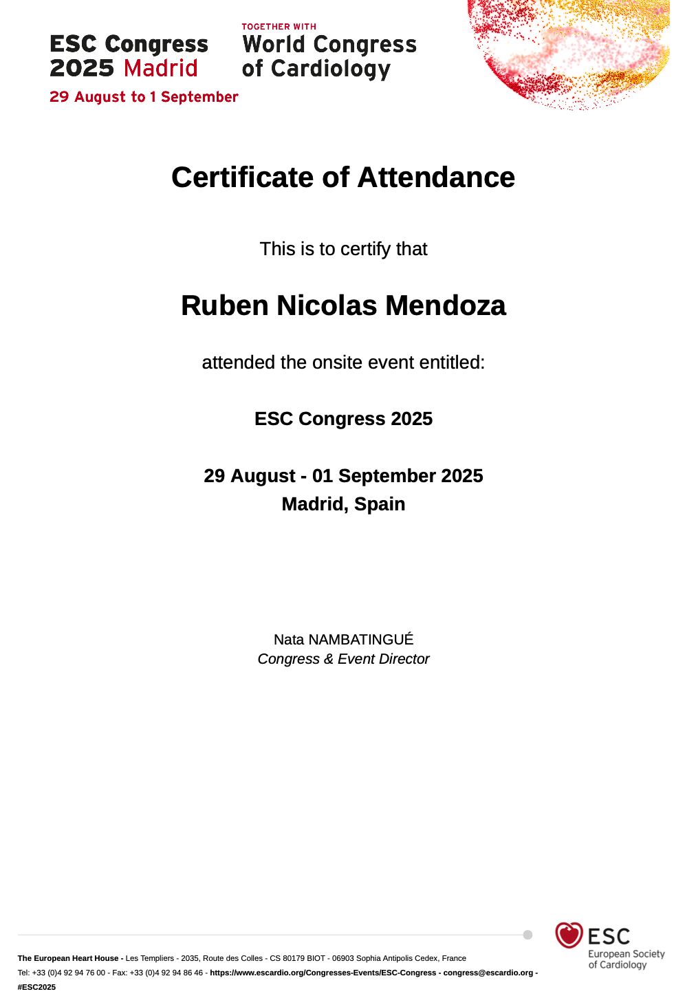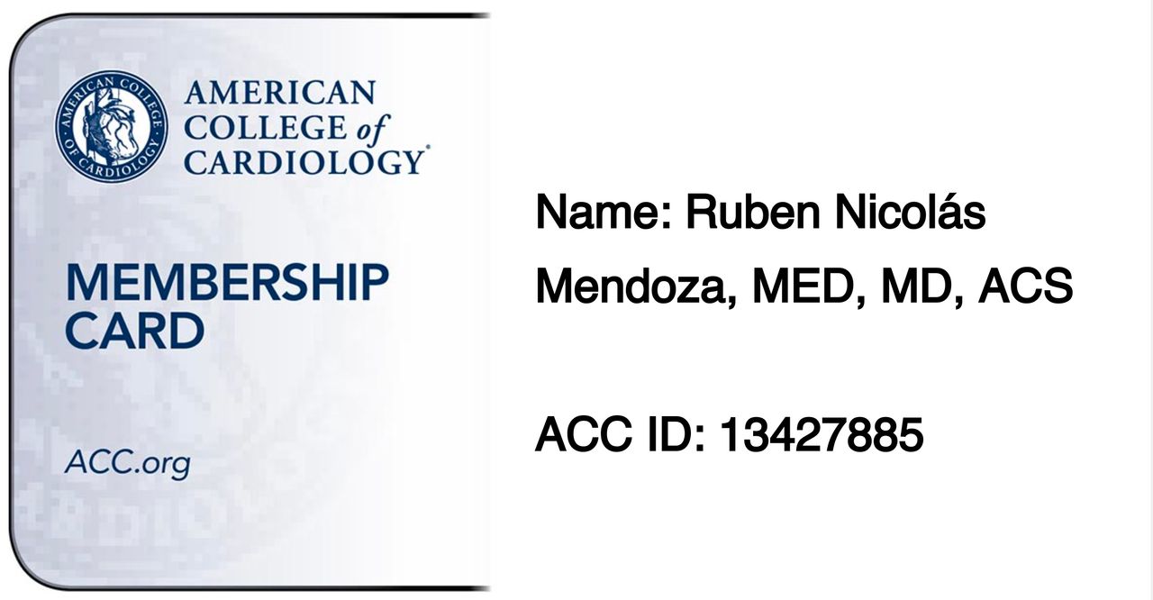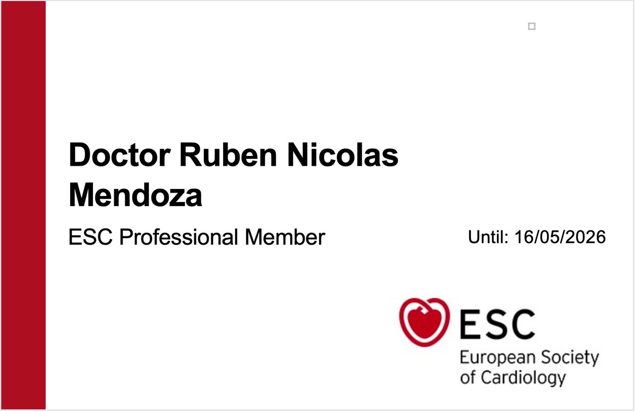 Miembro de la European Society of Cardiology (ESC) y American College of Cardiology (ACC).