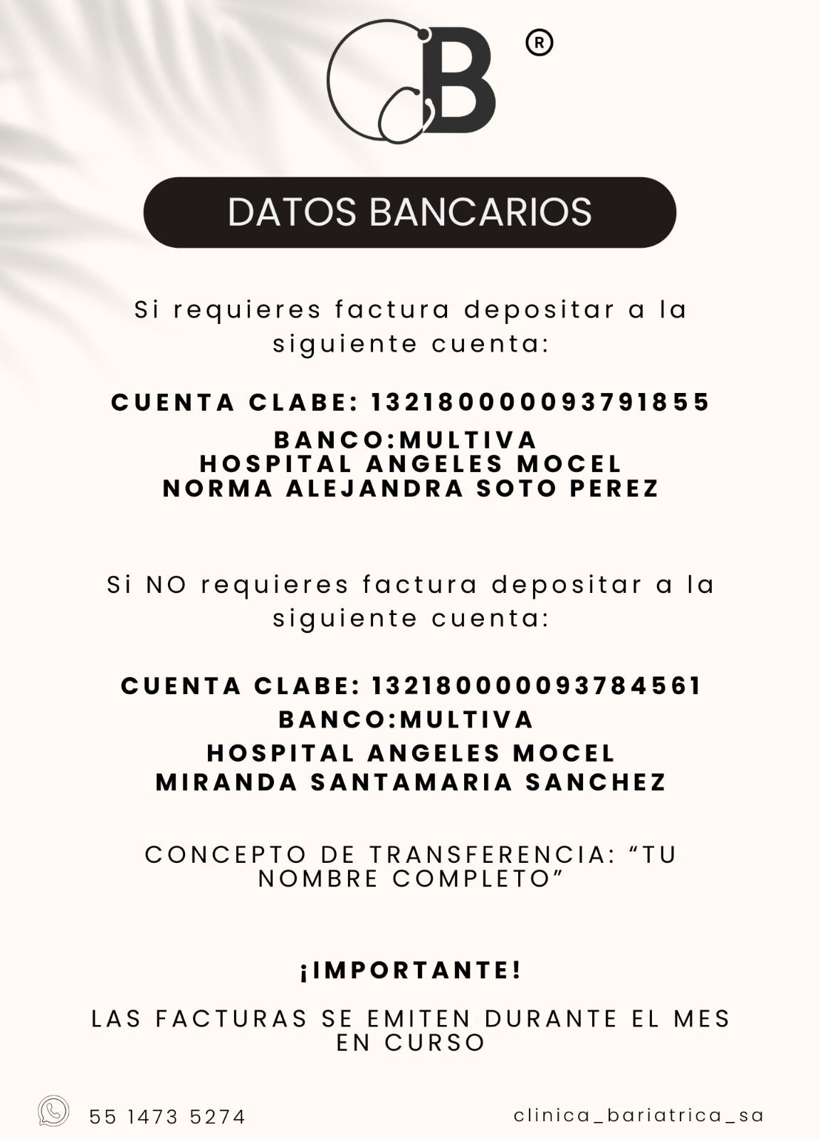 Para tu comodidad, aceptamos pagos mediante transferencia bancaria o a través de un enlace de pago con tarjeta de crédito (en la foto vienen los datos bancarios).