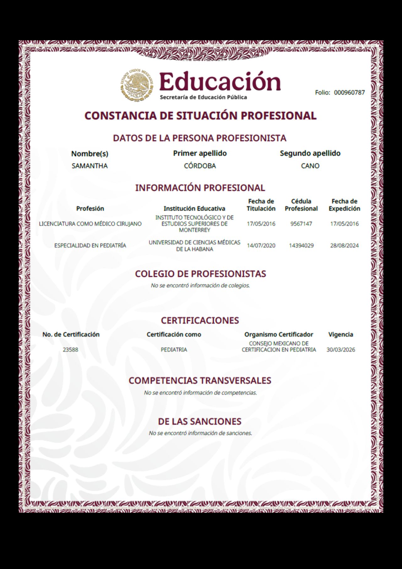 Fue muy atenta, le dio solución a mis dudas y en todo momento cuidó de una buena atención a mi bebé.