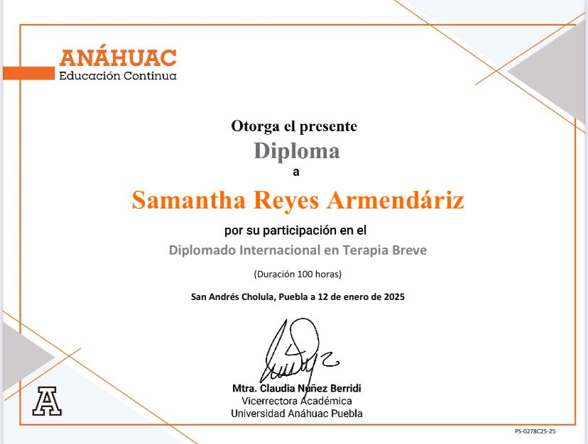 Tengo un diplomado en Mindfullness avalado por la universidad autónoma de Tlaxcala.