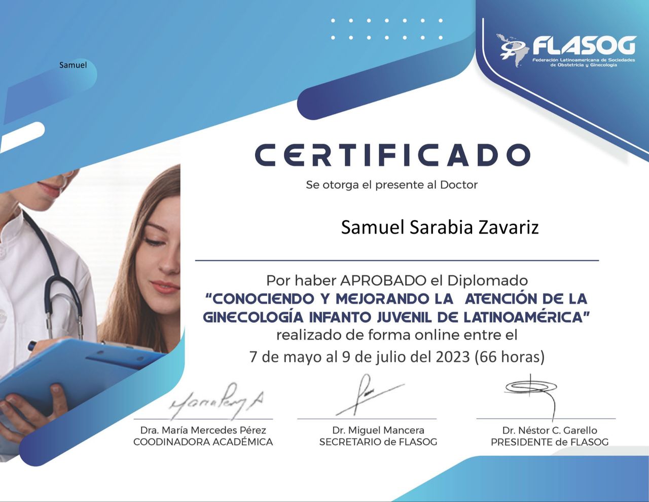 Cuento con formación complementaria en ginecología infanto-juvenil, avalada por la Federación Latinoamericana de Sociedades de Obstetricia y Ginecología y la Universidad de La Plata (Argentina), lo que me permite brindar atención cálida y especializada desde edades tempranas.