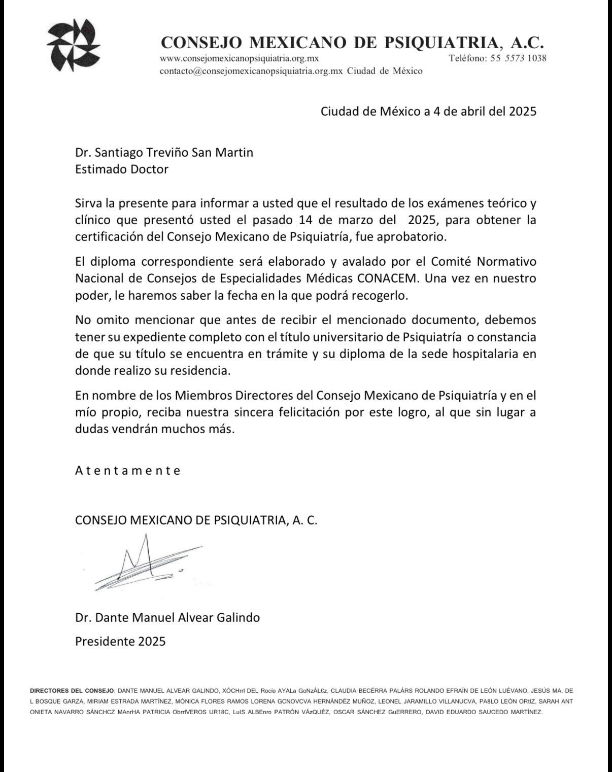 Elegí la psiquiatría porque entendí muy pronto que el sufrimiento psíquico rara vez es evidente, pero siempre es profundo. A lo largo de mi formación médica descubrí que detrás de los síntomas hay historias, contextos y experiencias que merecen ser comprendidas con rigor y respeto. Mi práctica se basa en una evaluación clínica cuidadosa, sustentada en evidencia científica, pero también en la escucha genuina y sin juicios.